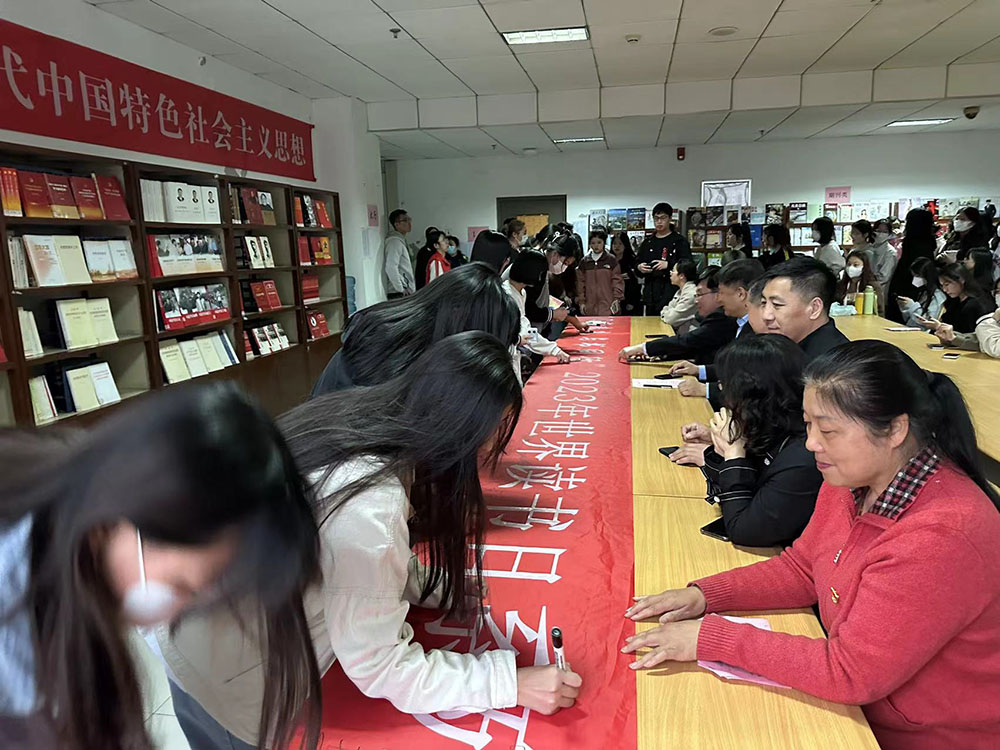 4月23日下午,河北工艺美术职业学院“阅享春光 与书同行”2023年读书日系列活动在学院竞秀校区正式拉开帷幕。此次活动由图书馆(现教中心)组织,党委副书记赵云耕,纪委书记王立新,副院长杨庆华,党政办、教务处、学工部、美术系、时尚工艺系的主要负责人以及部分师生代表,共计200余人参加了此次活动。活动开幕式由图书馆党支部书记魏祥主持。