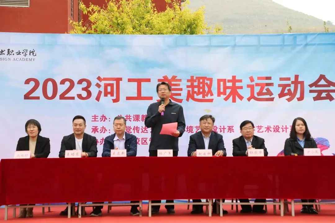 体育承载着国家强盛、民族振兴的梦想。为了展示工美学子的蓬勃朝气与竞技热情,加强工美学子间的凝聚力,提高学生的身体素质和心理素质。4月27日上午,我院在满城校区举办校园趣味运动会。学院院长张广军、党委副书记赵云耕、纪委书记王立新、副院长杨庆华出席开幕式,相关部门和系部的党政负责人在主席台就座。本次运动会由公共课教学部主办,视觉传达设计系、环境艺术设计系、数字艺术设计系承办,满城校区管理部协办。