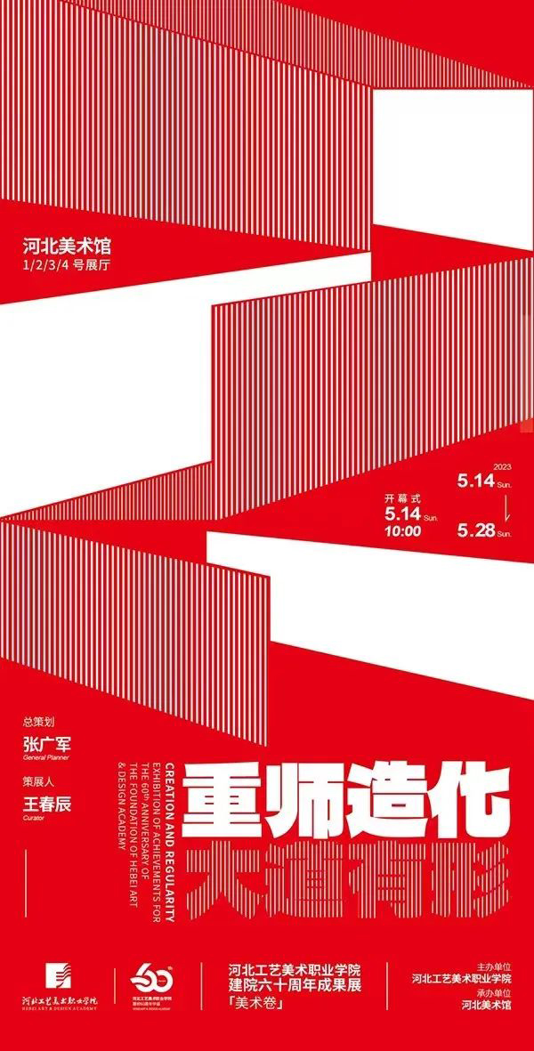 由我院主办,河北美术馆承办,学院院长张广军担任总策划,中央美术学院教授、博导、美术馆副馆长王春辰担纲策展人,站在历史的维度对学院建院以来美术领域的丰硕成果进行梳理,以时间发展为线索,全方位展现不同时期学院的美术领域的发展面貌,筹办“重师造化 大道有形”——河北工艺美术职业学院建院六十周年成果展“美术卷”。