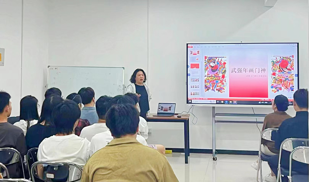 王亚莉老师从年画起源与流派分类讲起,细述了各地年画的鲜明特色,分享了武强年画艺术特色及制作工艺,并将武强年画在各个历史时期的优秀作品进行详细讲解。通过对武强年画悠久历史和传统工艺的介绍,让同学们近距离感受到传统文化的价值和内涵,引导同学们厚植爱国情怀,传承中华传统文化,坚定文化自信。