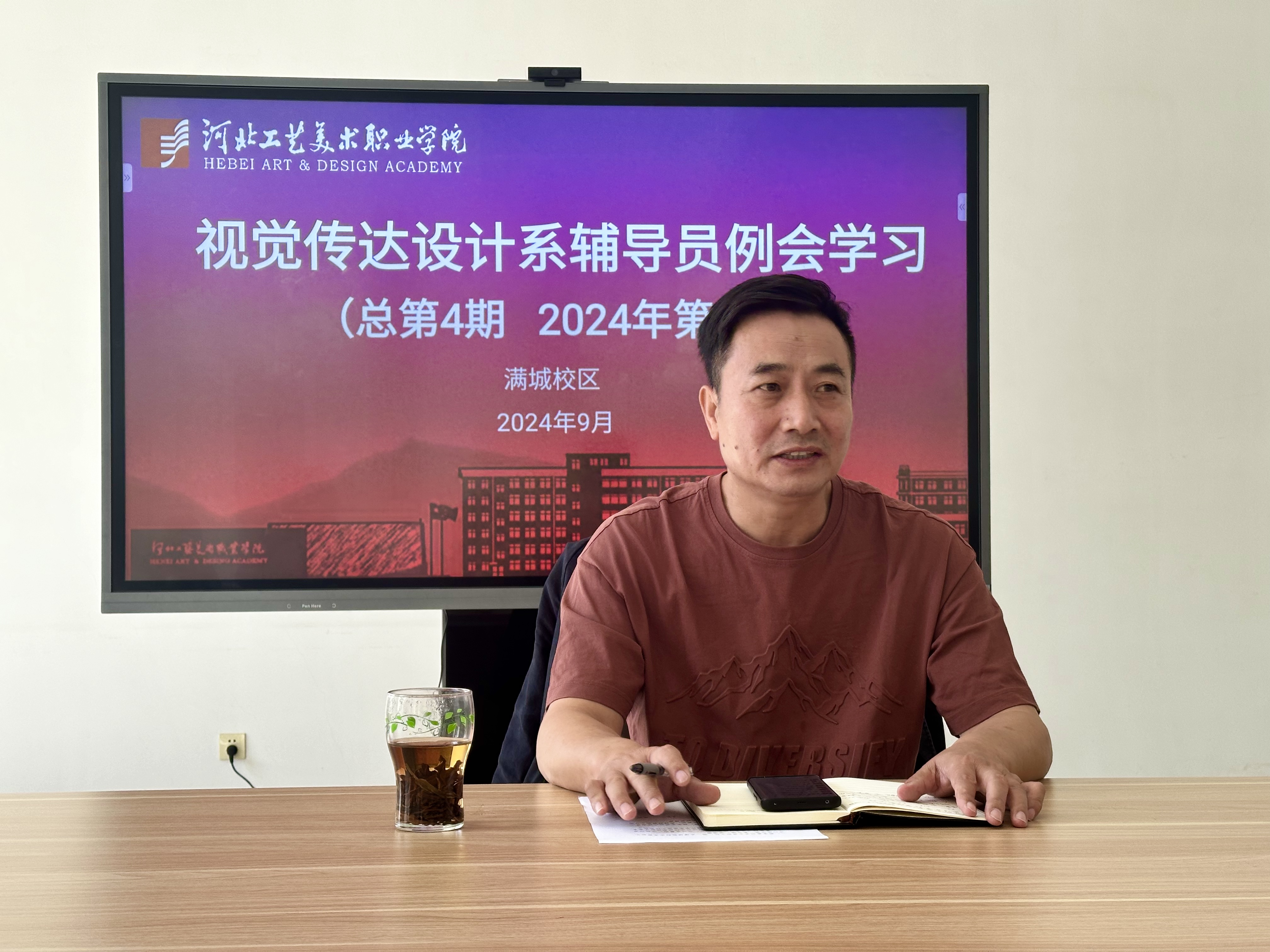 2024年9月16日,视觉传达设计系满城校区全体辅导员召开第四次集中理论学习会,系党总支书记王培良出席会议并讲话,系部满城校区全体辅导员参加。会议由师生一党支部书记赵骄阳主持。