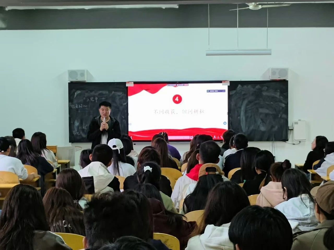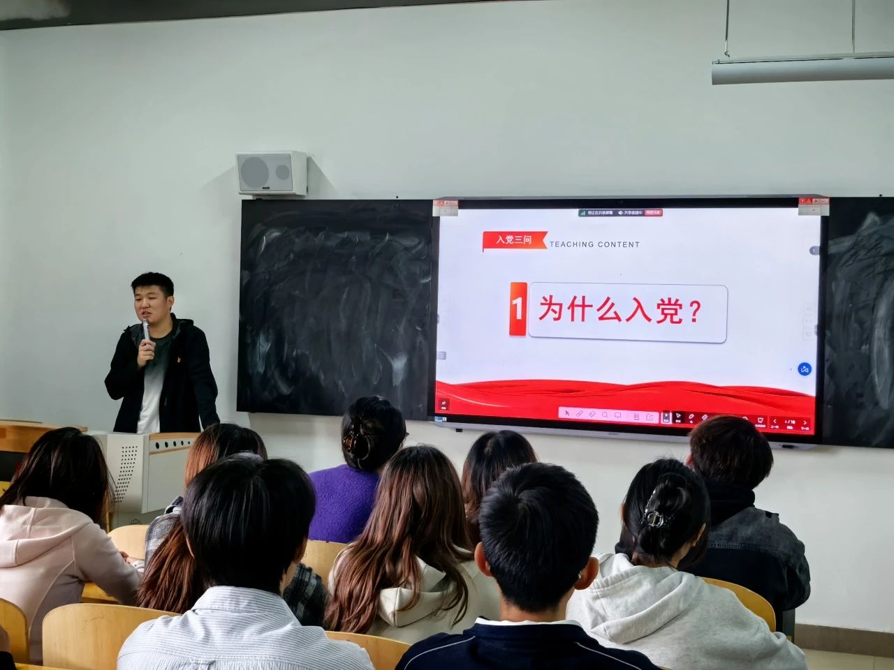 赵骄阳讲授《入党三问》专题党课。他以“为什么入党?”“入党能干什么?”“怎样当好党员?”为三大核心主题,为同学们诠释了成为一名合格的共产党员要具备的“党性修养、政治信仰、心态调整和健康人格。”他以生动的案例、真挚的情感,激发了同学们对自我成长、学业追求及未来投身党的事业的无限憧憬。