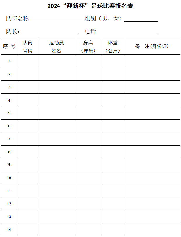 (2)报名人数男队10-14人,女队10-14人。
