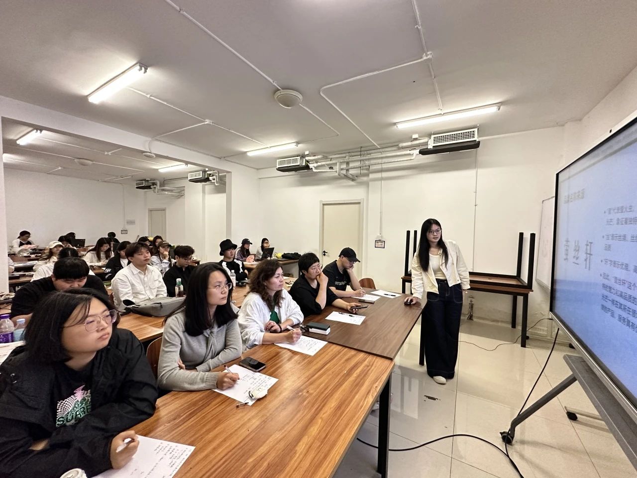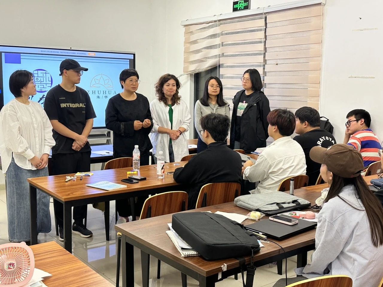 在课程实践环节,邀请定州缂丝非遗传承人王鹏巍老师及系部多位专业导师,共同参与标志设计项目汇报。学生们积极上台,激情洋溢地分享自己的创意理念,不仅展示了设计才华,更在真实项目操作中获得了宝贵经验。与王鹏巍老师的互动,让学生们深刻体会到缂丝艺术的魅力,激发了他们对传统文化的热爱与创新思维。