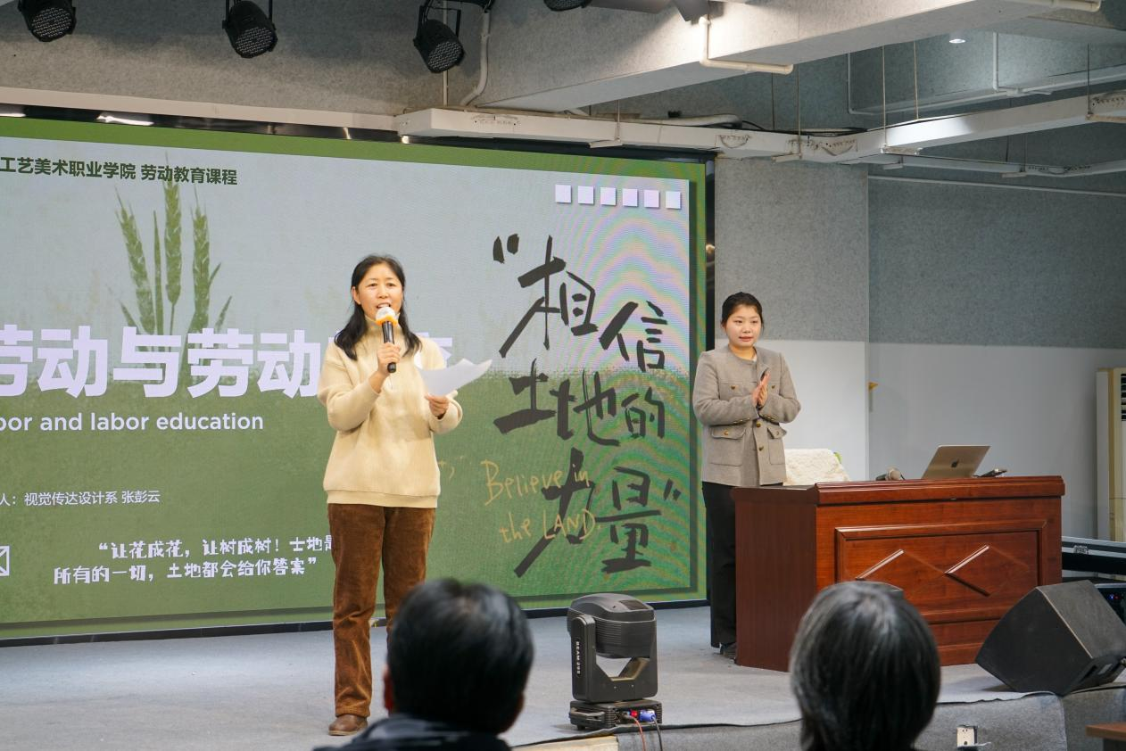 为进一步推动教育教学工作高质量发展,深入落实课程思政建设,12月25日下午,艺术实践中心成功组织开展《劳动与劳动教育》公开课。视觉传达设计系教师张彭云主讲,艺术实践中心副主任王丽霞主持。校长张广军、全国人大代表、国家工艺美术大师庞永辉、全国政协委员、国家工艺美术大师高英坡、艺术实践中心、五系两部负责人及师生代表近百人参加。
