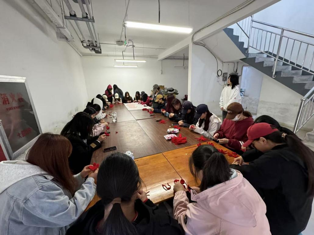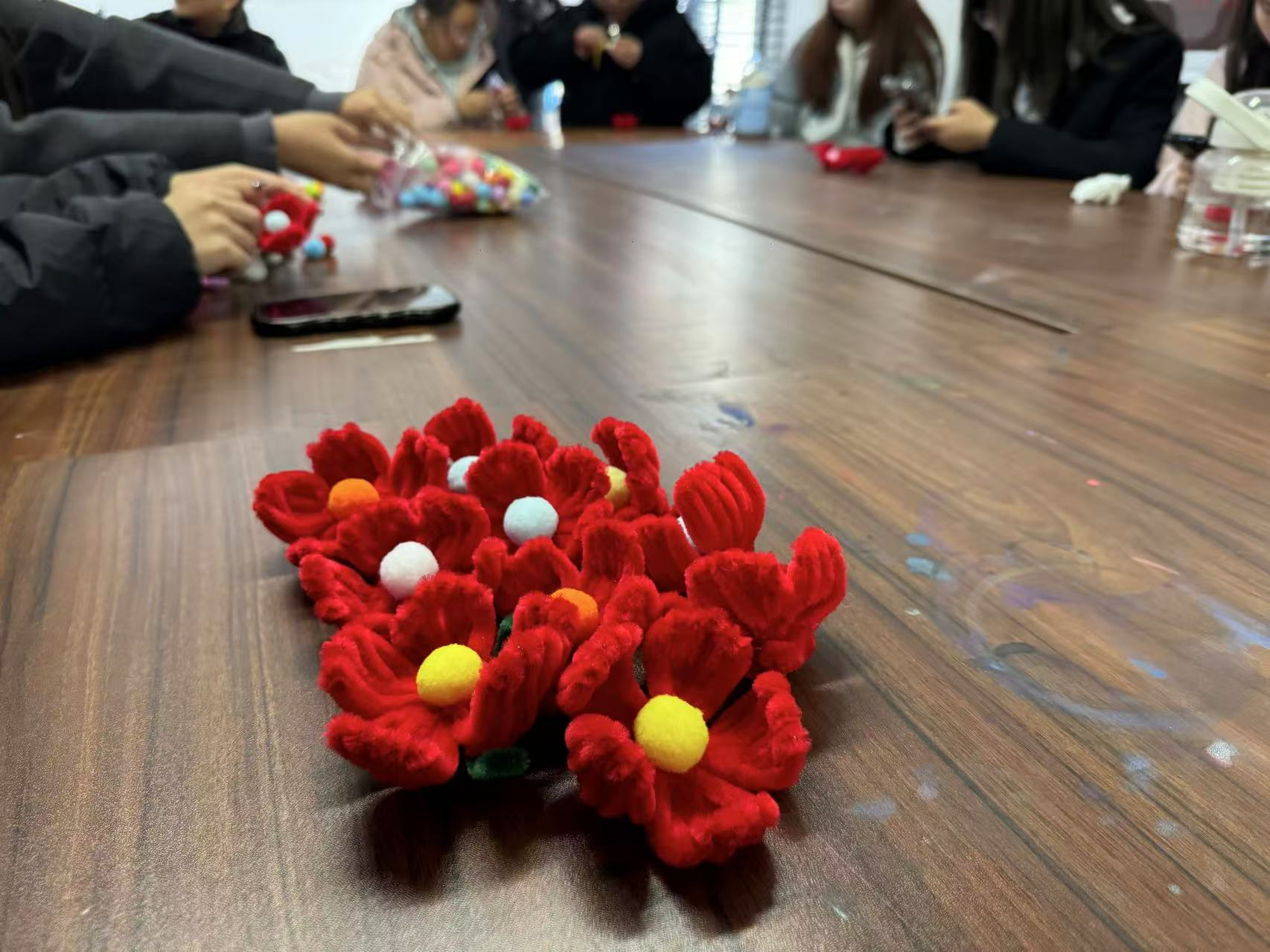 第三周和第四周的课程,恰逢我校六十华诞。张老师以此为契机,设计了一堂特别的劳动课——编织手工小红花,以此作为对学院的深情献礼。课堂上,已经掌握编织技巧的同学化身为小导师,耐心指导着每一位同学。大家相互学习,在编织的过程中,不仅锻炼了动手能力,更深化了同学间的情谊,共同编织出了一朵朵美丽的小红花。