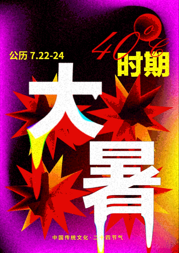 在动态海报制作练习中,我们引导学生以“二十四节气”为主题进行创作,深刻领会中国传统计时方式,挖掘“时间”背后的故事。这不仅仅是一次技术上的挑战,更是一次文化上的探索与传承。同学们通过深入研究每个节气的特点与象征意义,将它们融入到作品中,用动态的方式展现了二十四节气的博大智慧和独特魅力。
