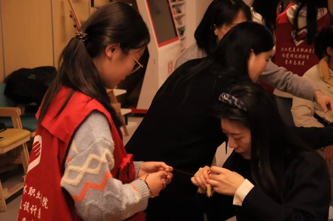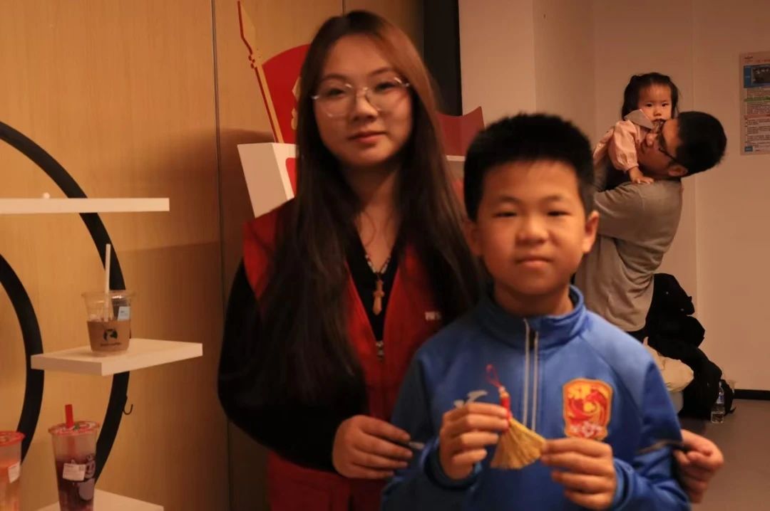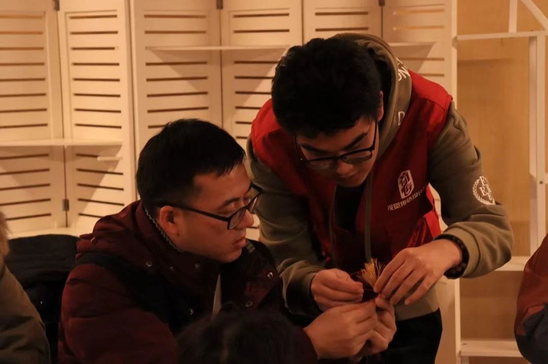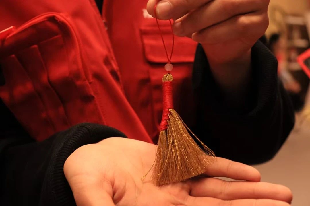 手编金扫帚挂件活动区域,摆满五彩丝线、金色珠子、精巧竹条等材料,在暖黄灯光映照下,散发手工创作的温馨。在志愿者的耐心指导下,读者和志愿者们齐动手,将一根根编织绳穿梭缠绕,慢慢勾勒出扫帚的形状,那专注的模样仿佛都忘却了窗外的严寒。看那一双双巧手,或灵巧熟练,或略显生疏却无比认真,经过绕圈、打结、固定等一道道工序,一个个精致的扫帚小挂件就诞生啦。它们有的挂着彩色的小珠子做点缀,有的系上了寓意美好的小铃铛,轻轻晃动,发出清脆悦耳的声响,仿佛在诉说着对新春的期盼,对美好生活的向往。