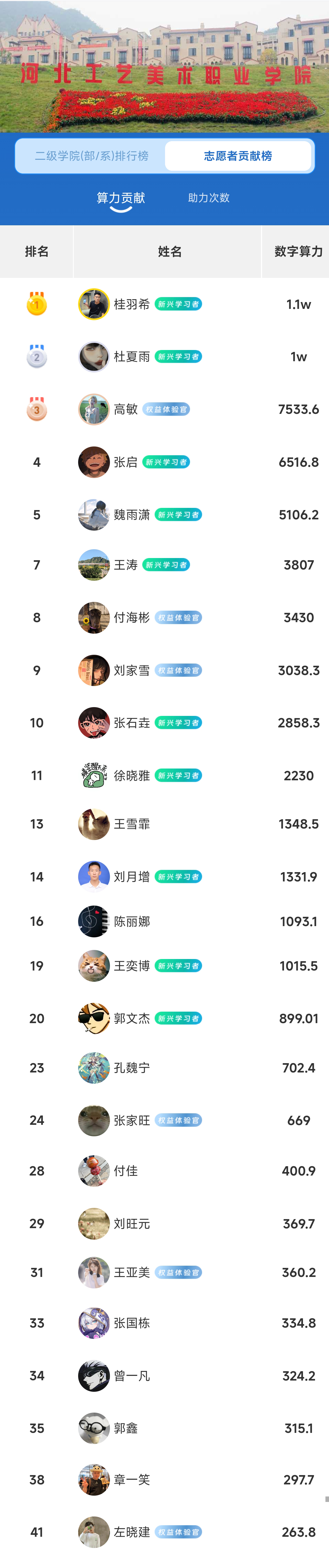 自活动启动以来,系团总支高度重视并统筹安排,通过志愿服务部,广泛动员全系学生积极参与“益动未来”主题活动。志愿者积极投身于“一餐一爱”“爱能公益”“宣推官”“AI知识大讲堂”“每日点赞志愿青春故事馆”等多个公益项目,并在实际志愿服务工作中将理论与实践结合,开展线上+线下联动工作,共有303名志愿者参与,累计汇聚 7.2万“数字算力”,极大地激发了青年志愿者投身志愿服务活动的热情。