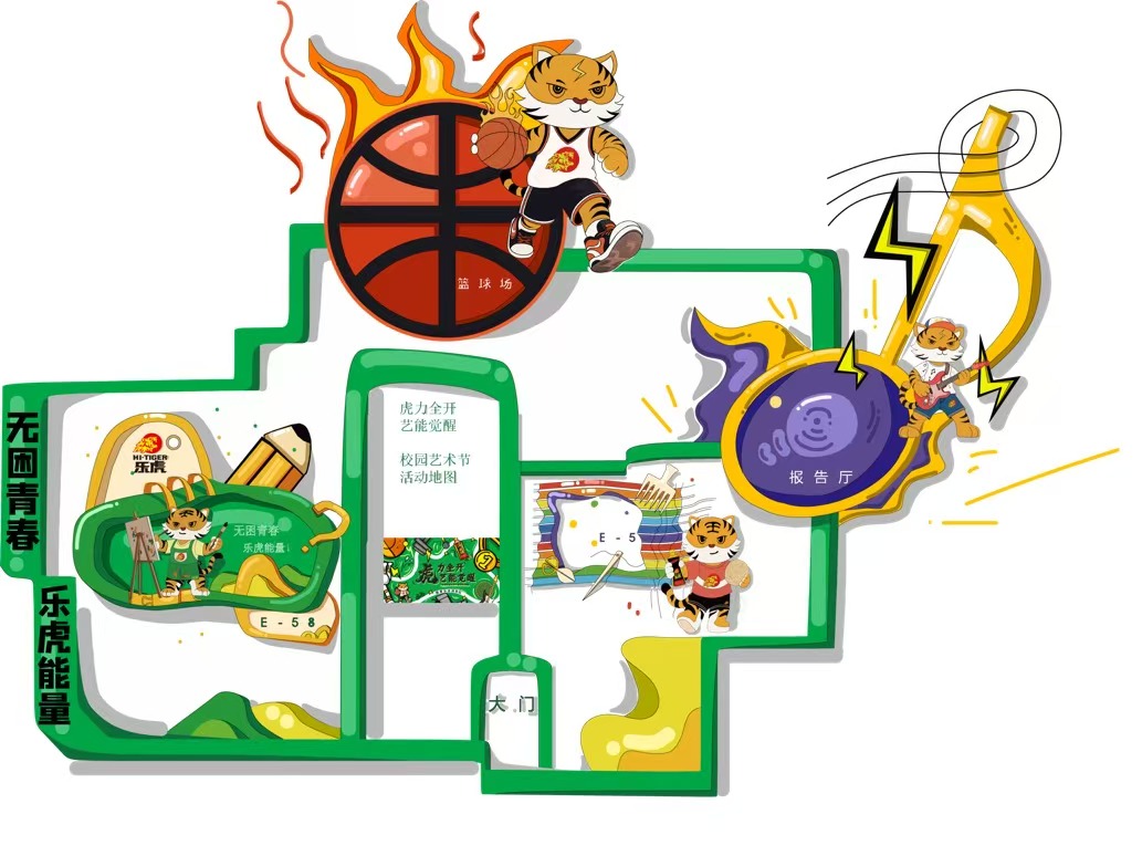 宝藏兑换处:所获得的虎券可于5.19日校园第二届“無界市集”乐虎摊位以及5.21日艺术节活动当天的58西广场处兑换一瓶500ml乐虎饮品。