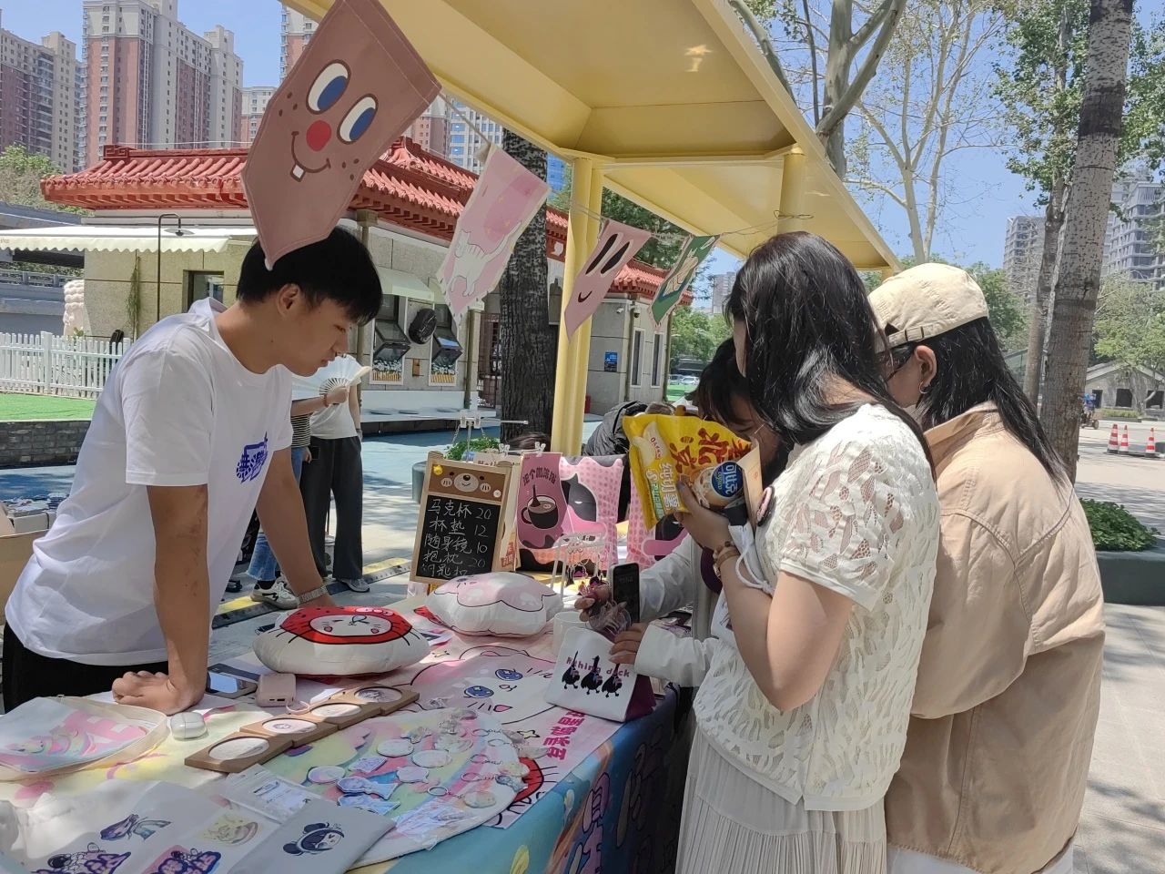 5月24日至25日河北工艺美术职业学院参加由石家庄旅投集团文化体育产业开发有限责任公司主办的“织音1953”主题市集活动。视觉传达设计系师生团队携八个摊位精彩亮相,以传统工艺与现代设计的深度融合为核心理念,为市民呈现了一场兼具文化厚度与艺术美感的沉浸式体验。