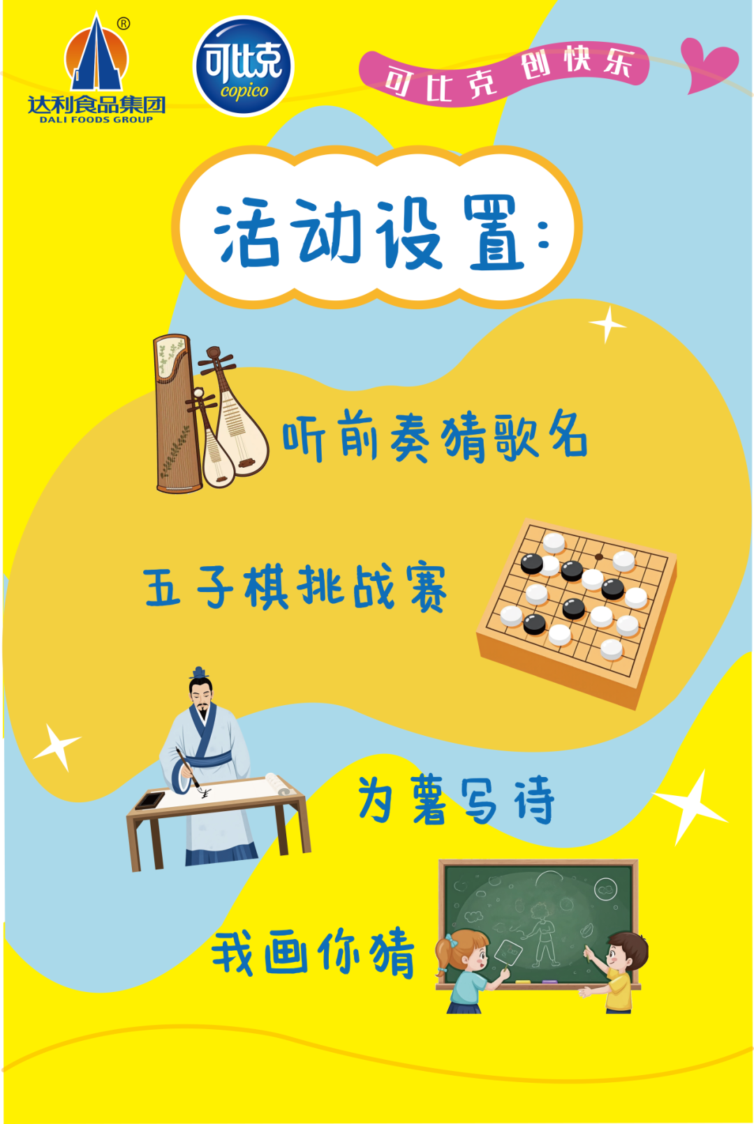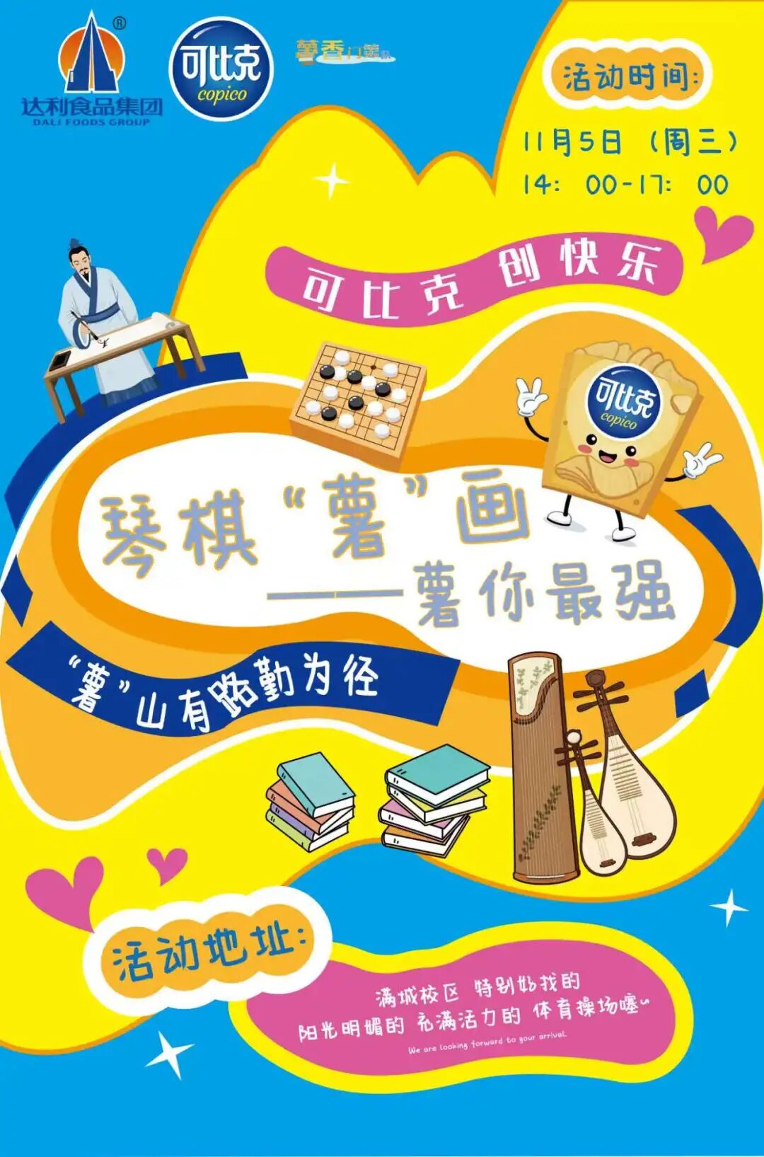 无论是音乐达人、文艺青年、棋坛高手还是灵魂画手,总有一款活动适合你!叫上你的小伙伴,一起来可比克薯片活动现场,嗨翻全场,把美味和快乐统统带回吧!