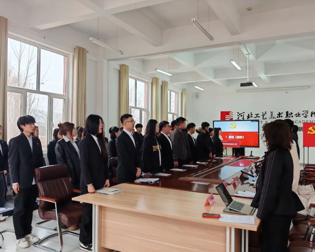 最后,全体党员起立奏唱《国际歌》,在庄严的旋律中,本次接收预备党员支部大会圆满完成各项议程并顺利闭幕。