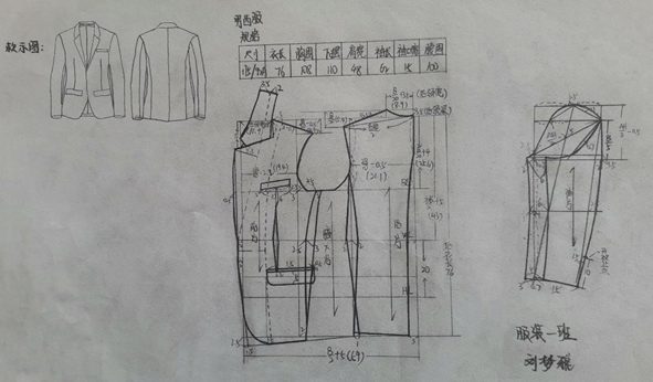 西服结构制图与工艺的主要内容是学习并掌握西服的结构设计及其制作工艺。众所周知,西服属于服装品类里比较复杂要求比较高的产品,单制作工序就有200多道。学生们在具备了一定的服装材料、服装设计知识的基础上进行本门课的学习。本课程涵盖服装生产流程中的纸样设计与工艺设计,也就是所谓的技术设计,它是实现服装造型最终结果的手段。