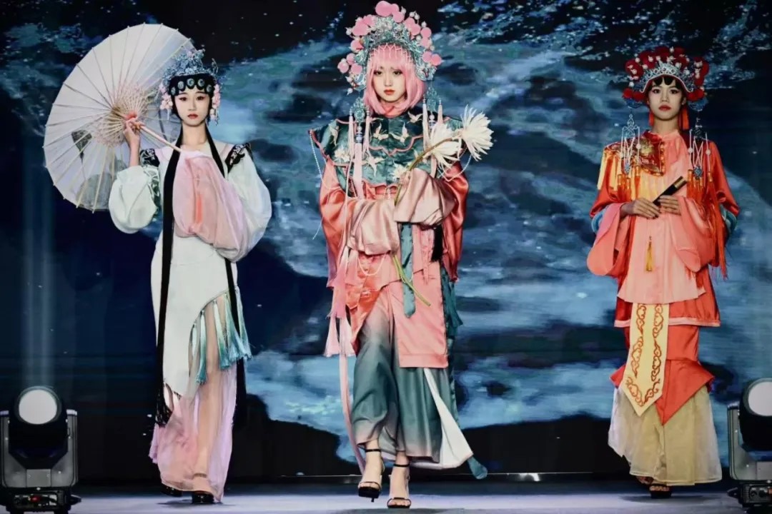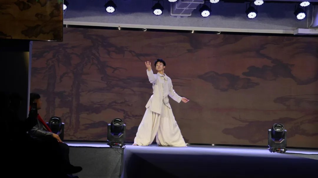 在一场古典与现代交融的视听盛宴中,古琴旋律悠扬开场,尺八与大提琴和鸣,为时尚之旅铺垫了深厚的文化底蕴。随后,现代舞《古窑今心》灵动演绎古今交融,增添一抹当代文化韵味。紧接着,3D数字时尚作品在大屏幕上精彩演播,这些作品将科技美学与非遗时尚深度融合,每一帧都闪耀着创新之光,震撼人心。最后服装与服饰设计、人物形象设计专业师生携手校模特社团,精心策划的服装走秀压轴登场,不仅展示了近三年优秀毕业设计。