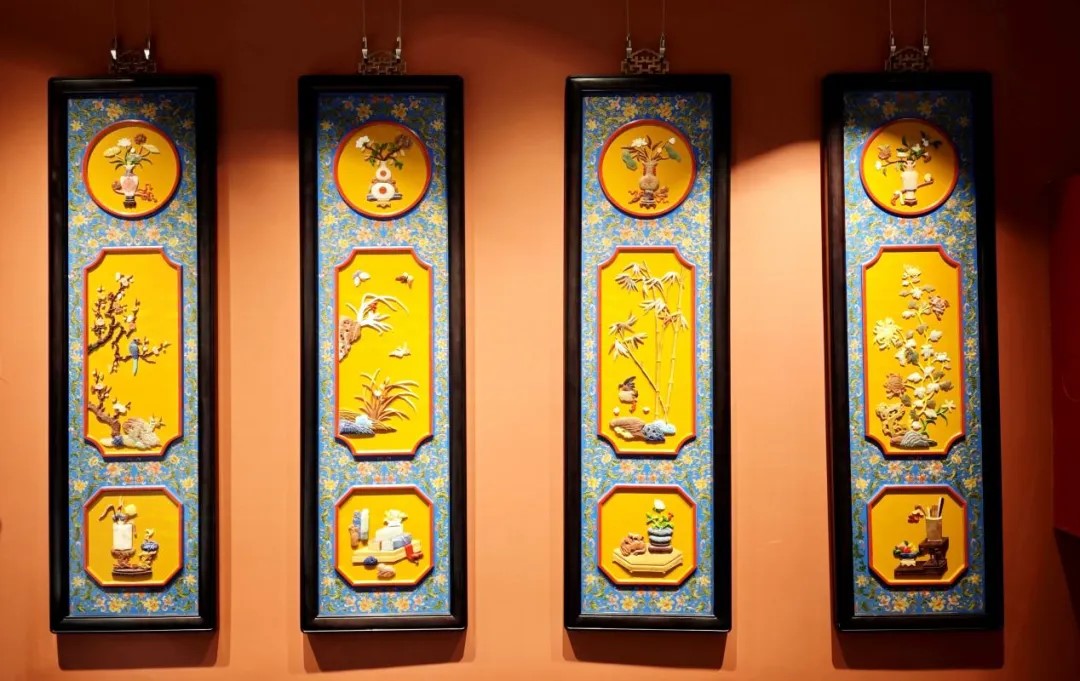 《百宝嵌梅兰竹菊四条屏》 周洪俊