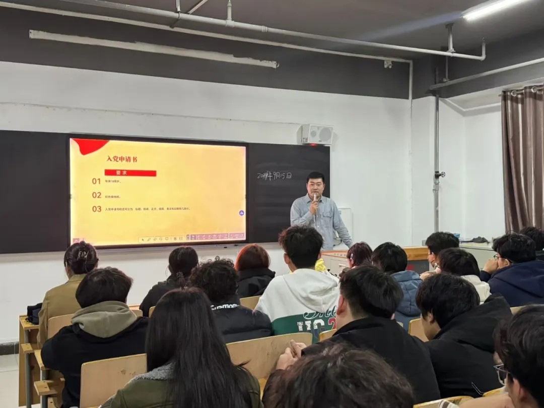 时尚工艺系党总支师生一支部书记马志伟从为什么要入党、怎样才能入党、如何撰写入党申请书等方面为学生进行了全面深入的讲解,使新生对入党有了更加直观和深入的认识。他鼓励同学们要树立共产主义远大理想,坚定中国特色社会主义信念,使同学们深刻认识到中国共产党人肩负的责任与使命,帮助新生了解中国共产党、端正入党动机、树立远大理想,积极向党组织靠拢。
