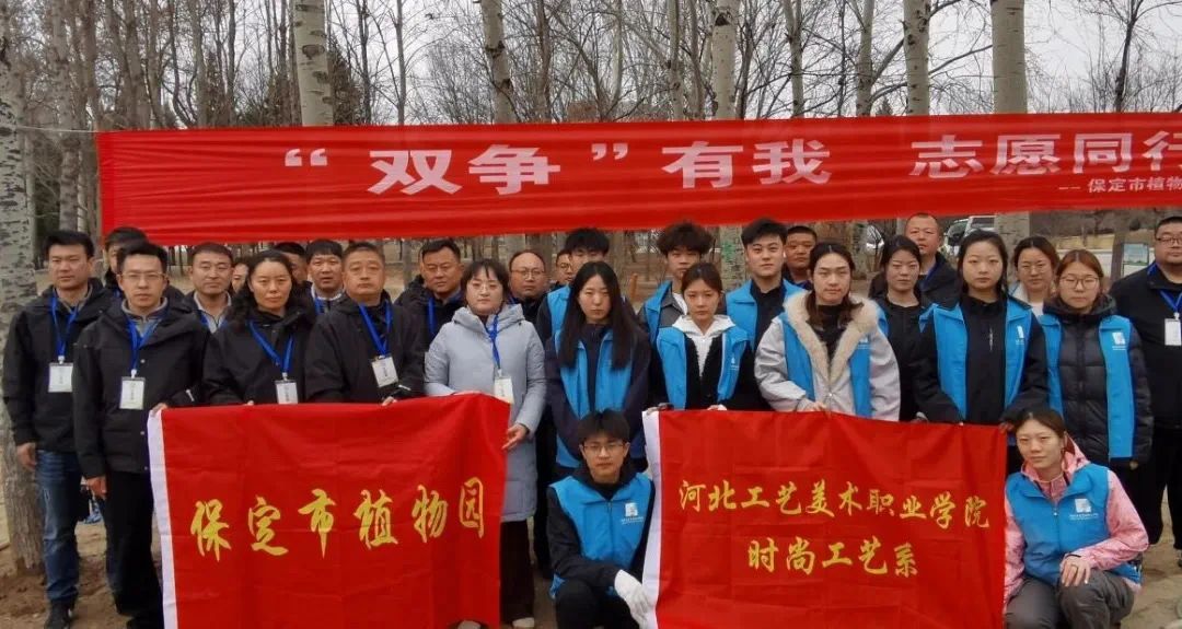 为深入学习贯彻习近平生态文明思想,推进生态文明建设,贯彻落实绿色发展理念,增强环保意识,时尚工艺系师生一党支部组织学生志愿者赴保定市植物园开展春季植树活动。