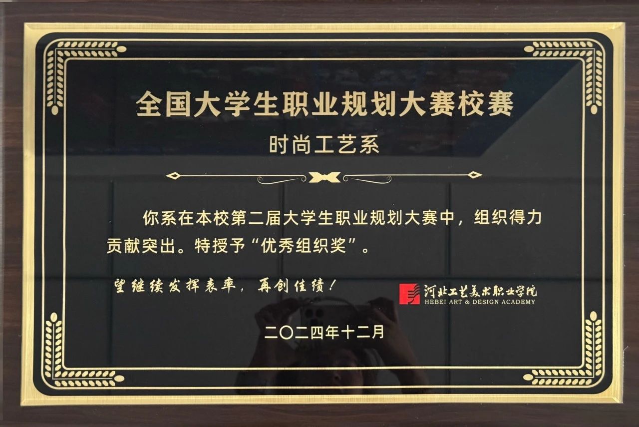 时尚工艺系在本次全国大学生职业规划大赛校赛中,组织得力贡献突出,特授予“优秀组织奖”。