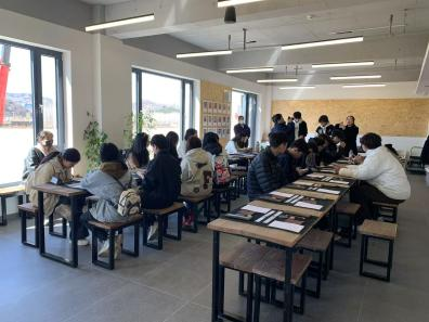 此前,时尚工艺系工艺美术品设计专业教研室主任姜珊老师通过河北省工艺美术学会张洁秘书长搭建桥梁,结识易水研有限公司邹天然总经理和易水砚艺术馆苏亚欣馆长,建立了良好的校企合作关系。此次研学之旅韩鹏祥、王淅两位老师与苏亚欣馆长进行了深度交流。双方围绕企业岗位用人需求、非遗传承展开探讨,苏馆长强调了了企业现有3D建模机雕师和研学助教等岗位需求,对此,韩老师、王老师也讲到了工艺美术品设计专业的人才培养方案中就有相对应的课程,并积极向企业推荐优秀毕业生进行实习。交流结束后,在工艺美术品设计专业教研室内和建模方向的杜可可和孙柳两位老师对接,两位老师非常配合,积极落实企业需求。