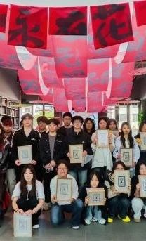 在完成砚雕工艺学习后,同学们迎来了易水砚砚拓工艺体验。在已经雕刻好的龙凤纹辅手砚上,大家跟随研学老师的示范,在带队老师的耐心辅导下,一步步完成砚拓工序。从浸湿宣纸、铺纸按压,到用拓包均匀上墨,每一个步骤都需全神贯注。当一张完整的砚拓作品呈现在眼前时,同学们脸上洋溢着满满的成就感,这不仅是一件作品,更是对非遗技艺的一次生动传承。