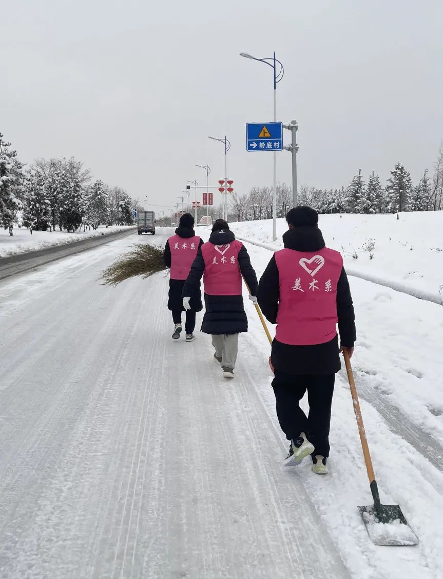 2023年的第一场雪下了整整三天,大地一片银装素裹,在享受雪花带来的浪漫和美景的同时,房檐屋角的积雪却成为岭底村孤寡老人刘大娘的一大难题。当美术系党总支师生二支部得知消息后,立刻向党总支汇报,并组织支部党员、入党积极分子开始商讨方案,制定解决措施,在雪停之后,开展了一次“我为群众办实事 我为村民扫积雪”志愿服务活动。
