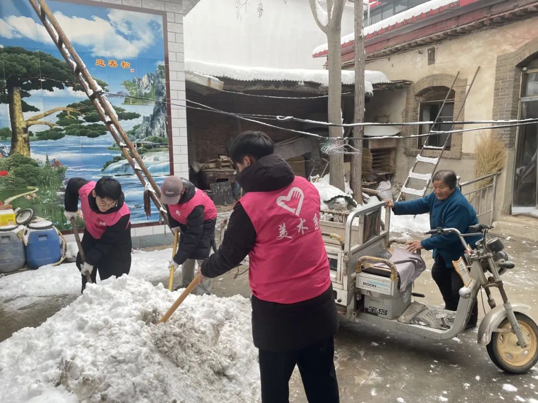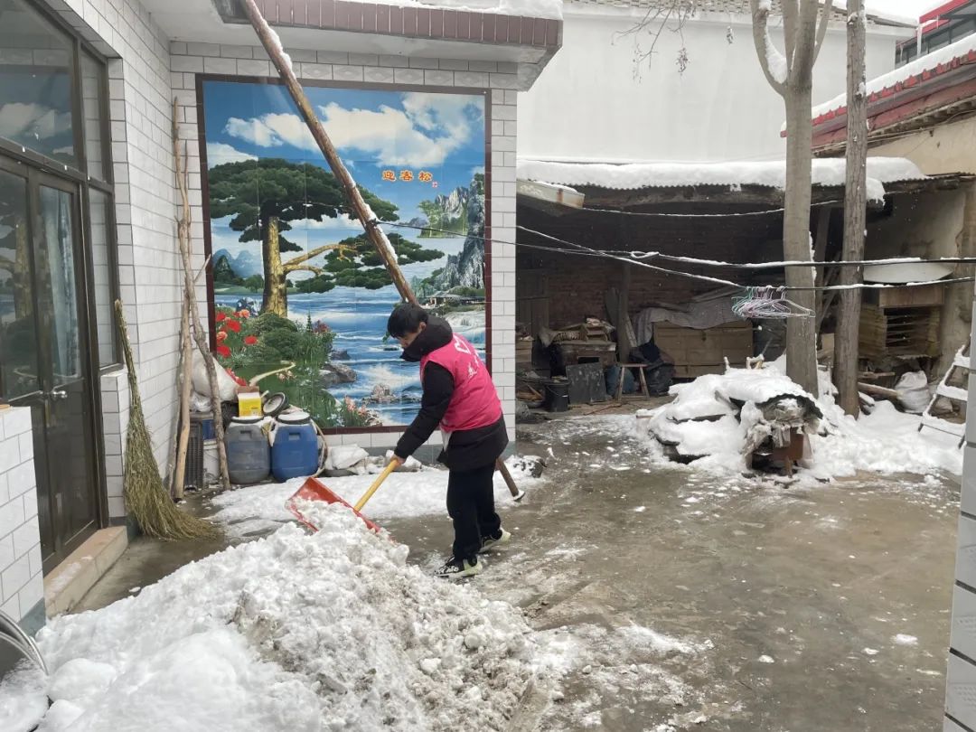 经过1个多小时的奋战,老人家院子里的积雪全部被清理干净。临走前大家嘱咐老人,要好好保重身体,家里有什么需要帮助的地方随时联系我们。