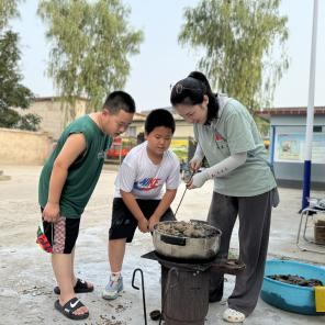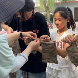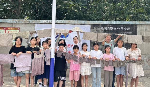 在渐村,专业教师曹肖肖与实践队员们带领村民和儿童一起体验染布过程。通过现场讲解和示范,帮助村民掌握核桃青皮染布技术,大家在参与染布体验中,不仅学到了知识,还培养了动手能力和环保意识。