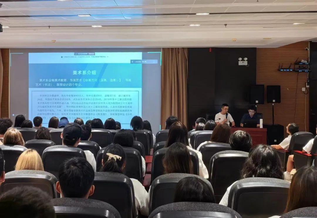 会上,系部领导对2024级新生加入到美术系大家庭表示热烈欢迎。随后,由专业教师李云鹏主讲“系部介绍”,就我系发展历史、专业特色等内容作整体介绍,对我系的课程建设、师资力量、荣誉成就等内容作了详细介绍;专业教师与在场同学开展互动问答,老师们针对同学们提问的入学后学习生活相关问题进行详细解答,并对同学们提出了“勤学善思,培养兴趣”、“注重实践,积累经验”、“不忘初心,持之以恒”等希望。