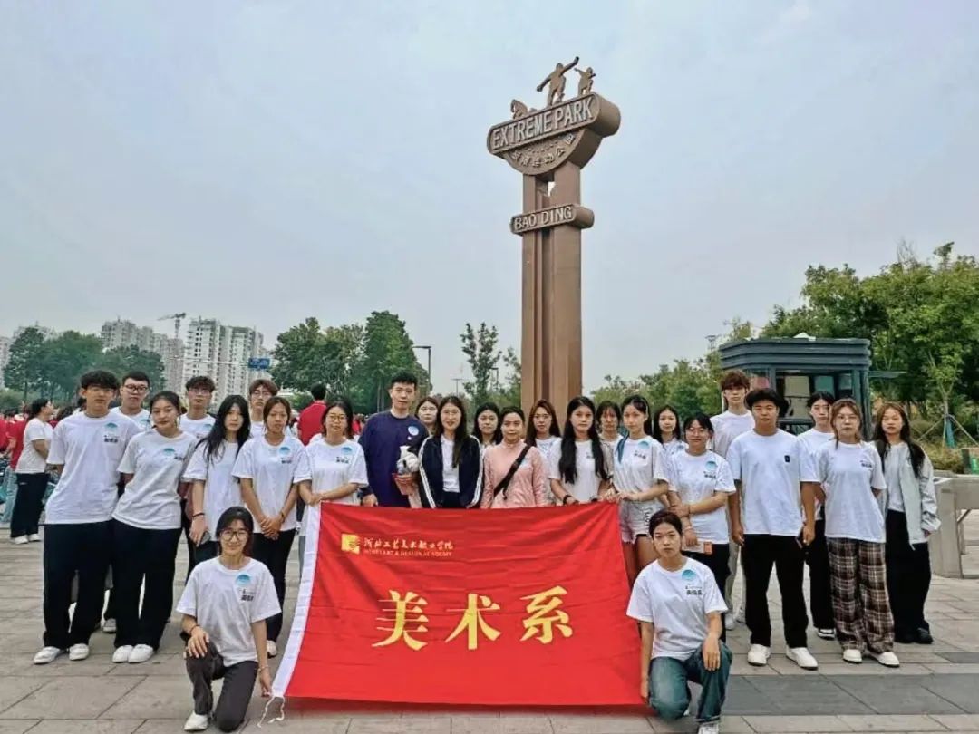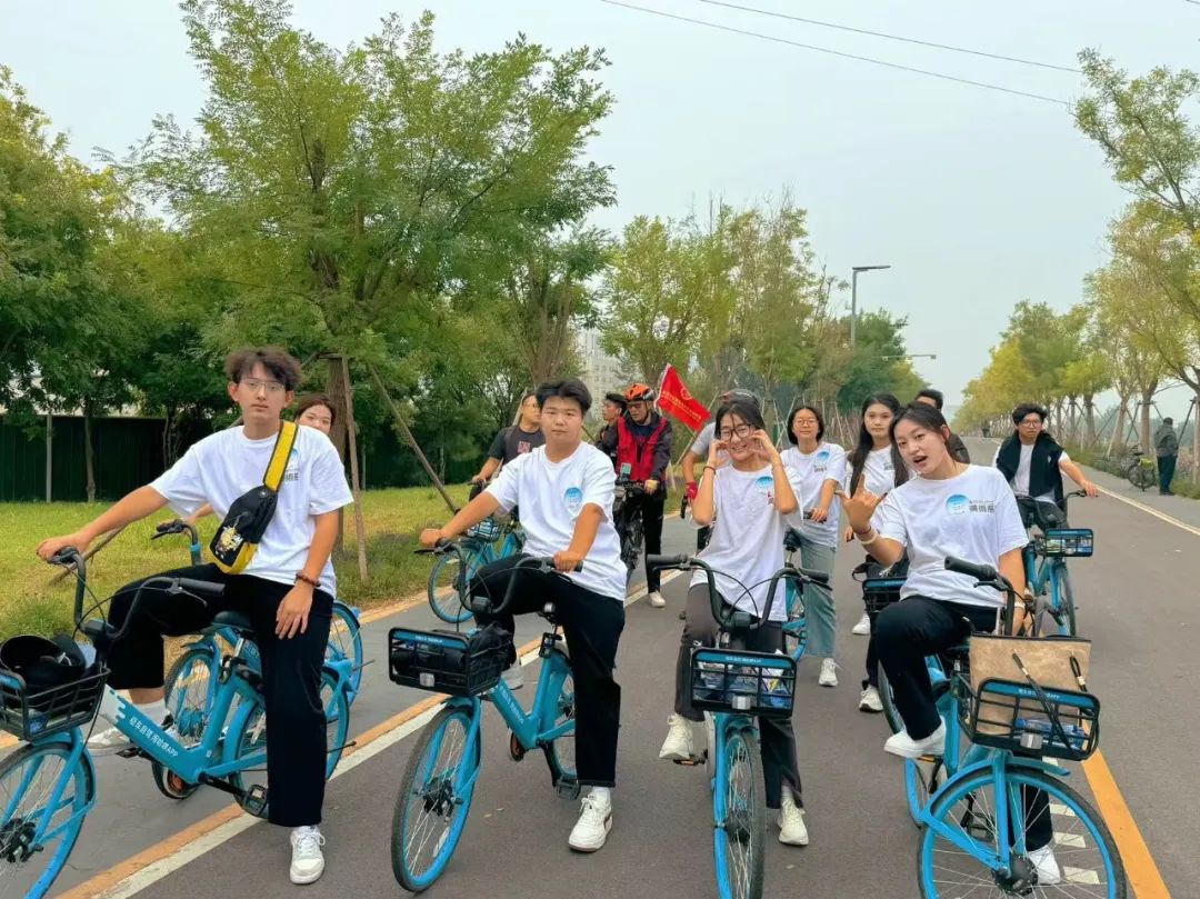 活动现场,美术系师生整装列队,身穿带有校徽、系名的服装,脸上洋溢着青春的笑容。大家在领取了特制骑行贴、集章卡和补给之后, 由极限运动公园出发,骑向黄花沟公园。路途中,大家通过骑行环城水系、欣赏沿途风光、打卡地坛书市、参与文化活动等形式,深刻感受保定深厚的文化魅力和人文气息,营造助力保定青春友好城市建设的浓厚氛围 。