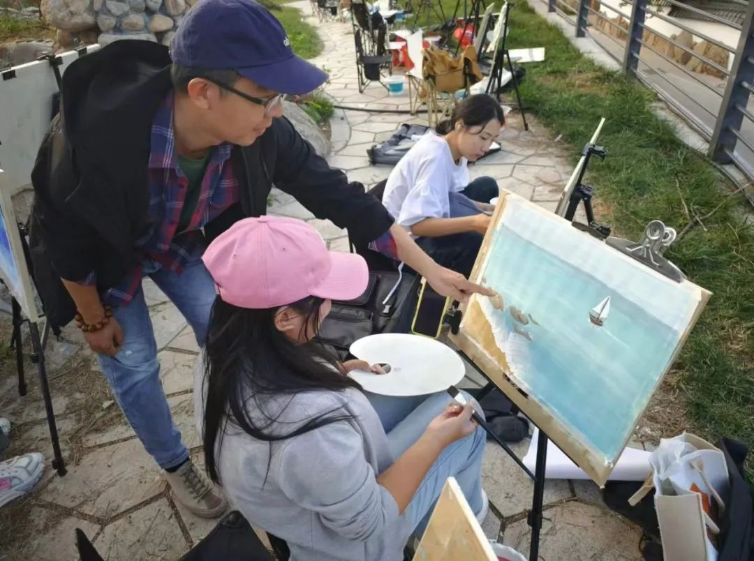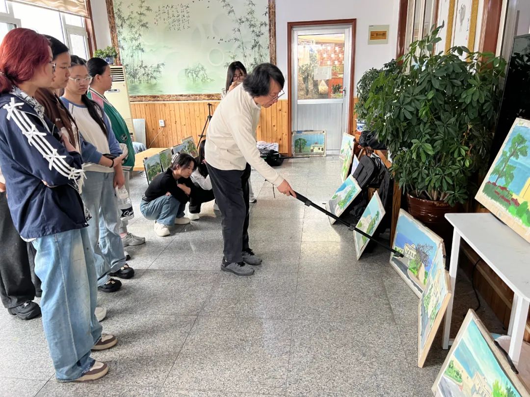 在同学们到达写生地点后,辅导员教师用心统筹学生生活,细心看护学生安全,耐心解决学生日常困难,积极帮助学生适应写生生活。第一阶段,专业教师通过理论指导及耐心讲解,引导学生热爱自然、关注生活,提高学生的观察能力、表现能力和创新能力,使学生在实践中掌握风景画的创作方法和技巧。学生在课程中也表现出较高的积极性,能够认真观察自然,努力创作,大家相互学习、交流,形成了浓厚的学习氛围。