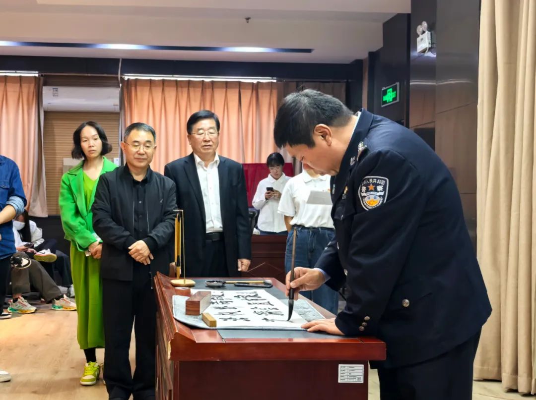 讲座结束后,王海军现场泼墨,为“学弟学妹”们书写了寄语,并将自己手写书稿捐献给母校。