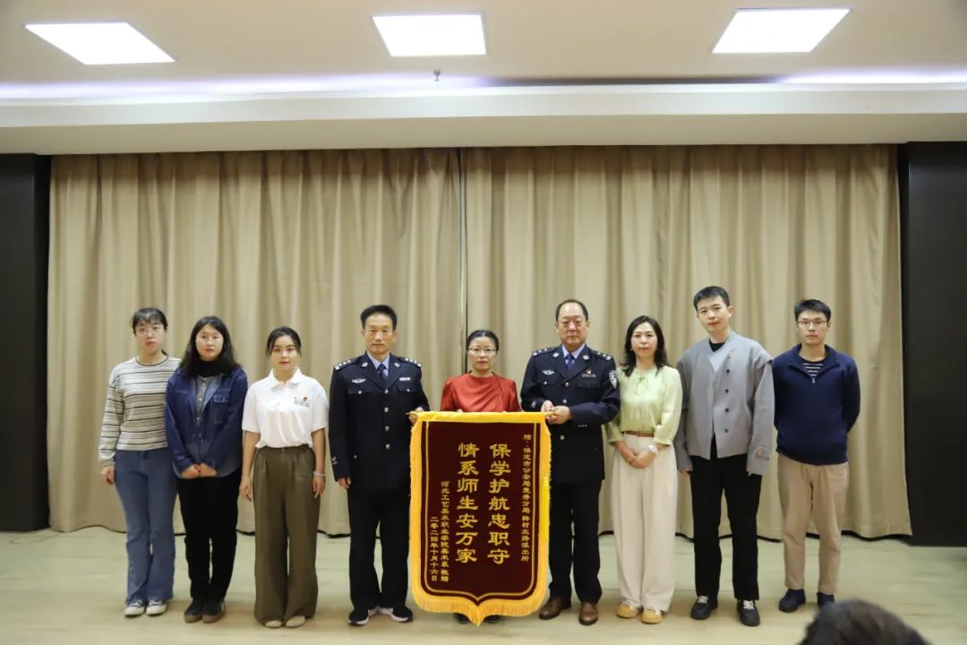 讲座结束后,邓云向韩北派出所赠送锦旗,以感谢他们在维护校园安全、普及法律知识方面做出的贡献。