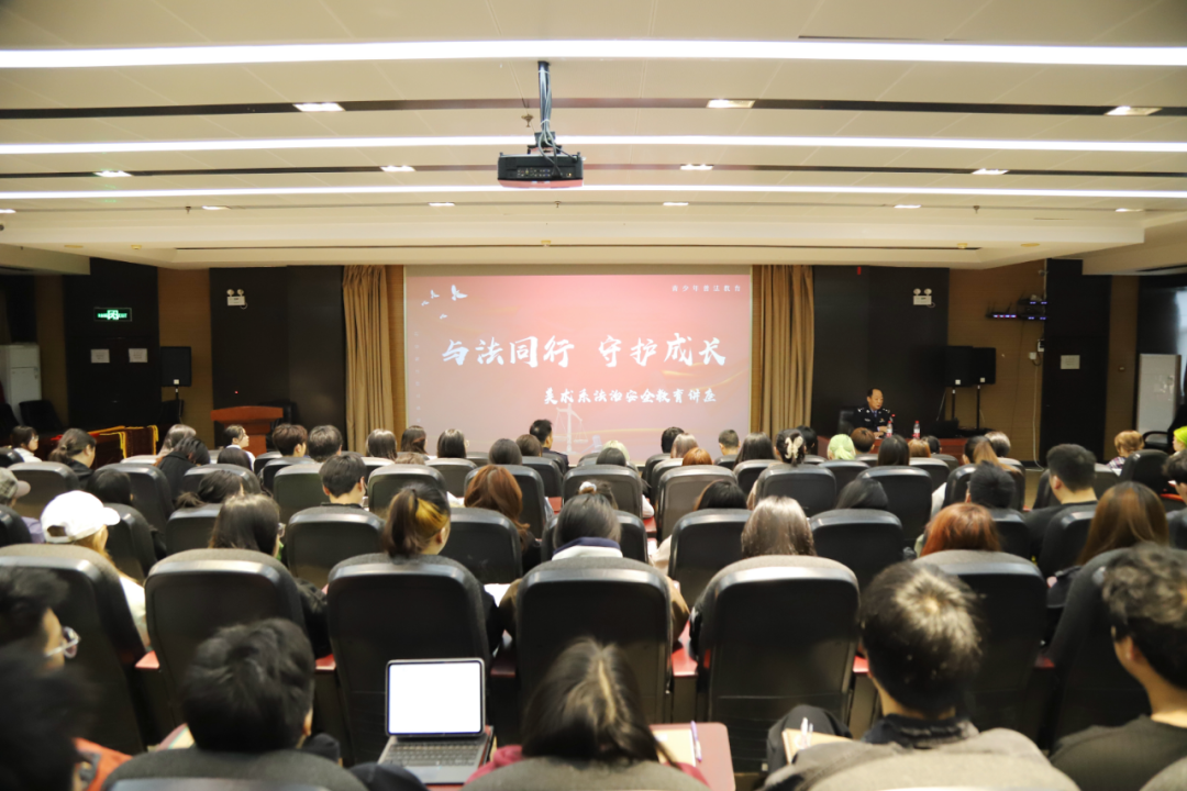 为全面贯彻落实党的二十大精神,深入学习宣传贯彻习近平法治思想,进一步加强校园法治宣传教育,不断提升我系师生法律意识,增强校园安全防范能力,10月17日,美术系党总支师生一支部特别邀请了保定市公安局竞秀分局韩北派出所副所长朱学涛为全体师生开展了“与法同行 守护成长”法治安全教育讲座,党委学工部部长邓云、美术系党总支书记张雅芳,以及美术系2024级师生代表共同参与了此次活动,美术系辅导员李一帆主持。