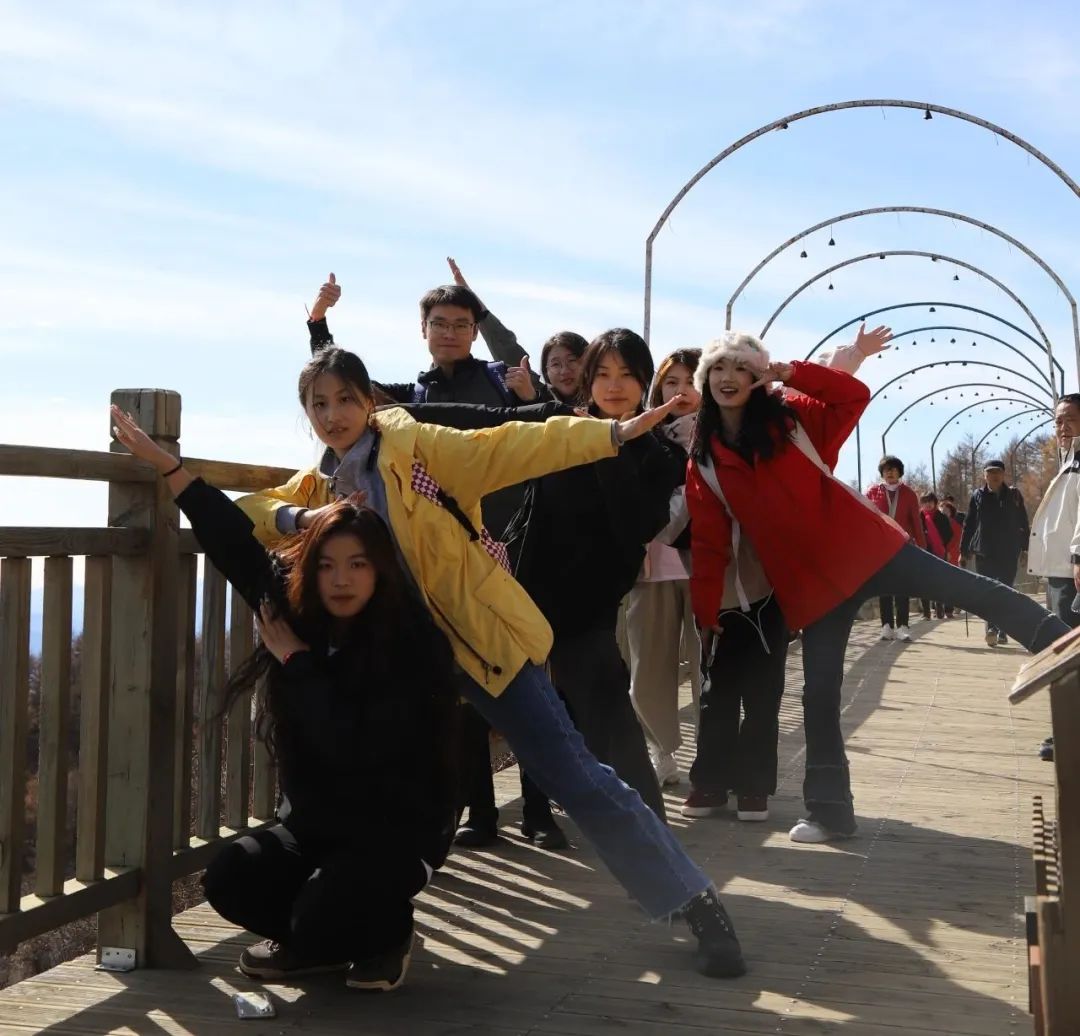 在观摩了太极拳表演后,师生们整装待发,开启了白石山的登山之旅。伴随着朝阳,大家热情洋溢,在专业志愿者的引导下,沿着白石山蜿蜒曲折的北线登山道,途经“馒头石”、“佛光顶”、“豁然崖”等美景地,共同享受大自然带来的视觉与心灵的双重震撼。攀登途中,大家彼此鼓励,不仅增强了团队凝聚力,也体验到挑战自我、超越极限的快乐。