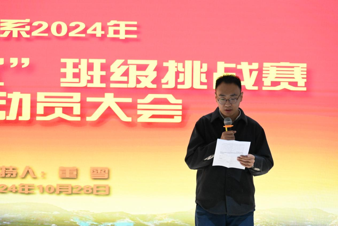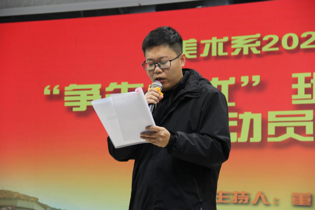 会上,美术系党总支师生二支部书记赵龙宣布挑战内容和规则,美术系党总支纪检委员常文超公布大赛检查方式及奖项设置。
