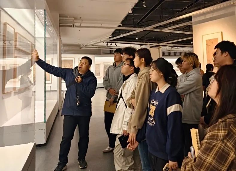 活动中,教师结合展览主题对作品的内容、艺术结构、人物造型、环境描绘以及笔墨的具体表现形式进行了详细讲解,不仅传授了国画技艺,更将思政内容融入其中,引导学生们树立正确的历史观、文化观和艺术观,激发大家对中华优秀传统文化的热爱和传承意识。同学们也被中华民族深厚的文化底蕴和独特的美学追求所吸引,纷纷表示将以此为契机,提升个人文化素养和艺术技艺,不断增强文化自信。