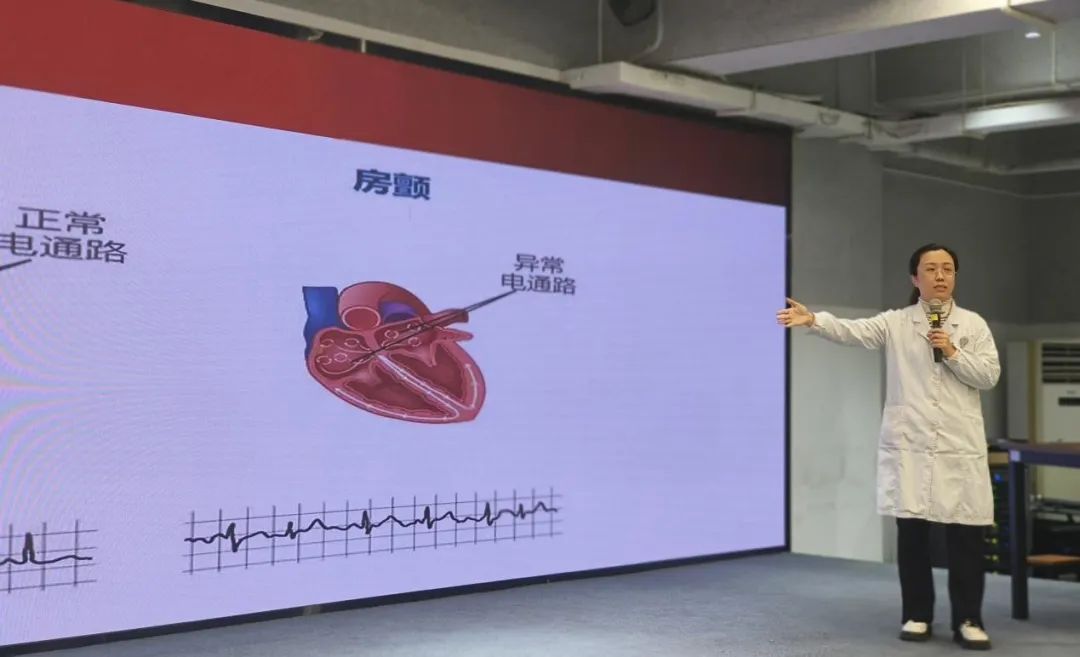 培训中,医护人员讲解了心肺复苏、气道梗阻(海姆立克急救法)的理论要点,并通过现场模拟演示的方法,让大家掌握了把握有效应急救护的“黄金时间”的急救技巧,此外,吴变稳医生还专门为大家解读了不寻常的“心动”房颤。