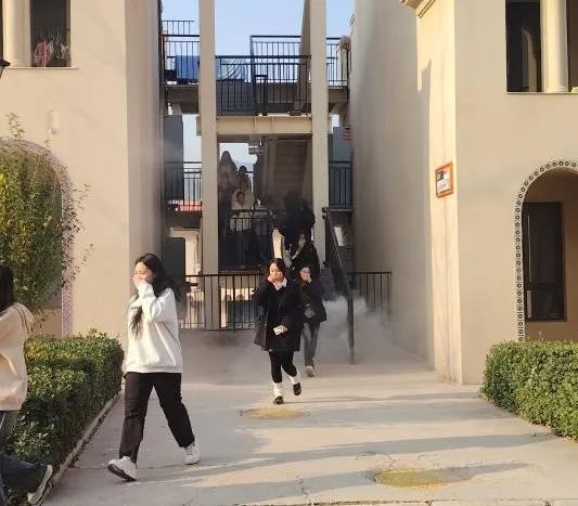 演练活动中,随着急促的警报声响起,全体师生立即行动。教室内的同学在教师和班长的统一指挥下,迅速放下手中的画笔,拿起湿毛巾捂住口鼻,沿着预定安全路线迅速撤离至指定区域。宿舍的同学,在辅导员和宿舍长的引导下行动,沿着墙边、压低身体、有序撤离。各班在到达指定安全位置后,立即进行了人数检查,并迅速向负责人报告了人数,实现了全员安全疏散。整个演练过程安全、快速、有序,大家都保持了高度的冷静,没有出现惊慌、推拉或拥挤的现象,较好达到了预期效果。