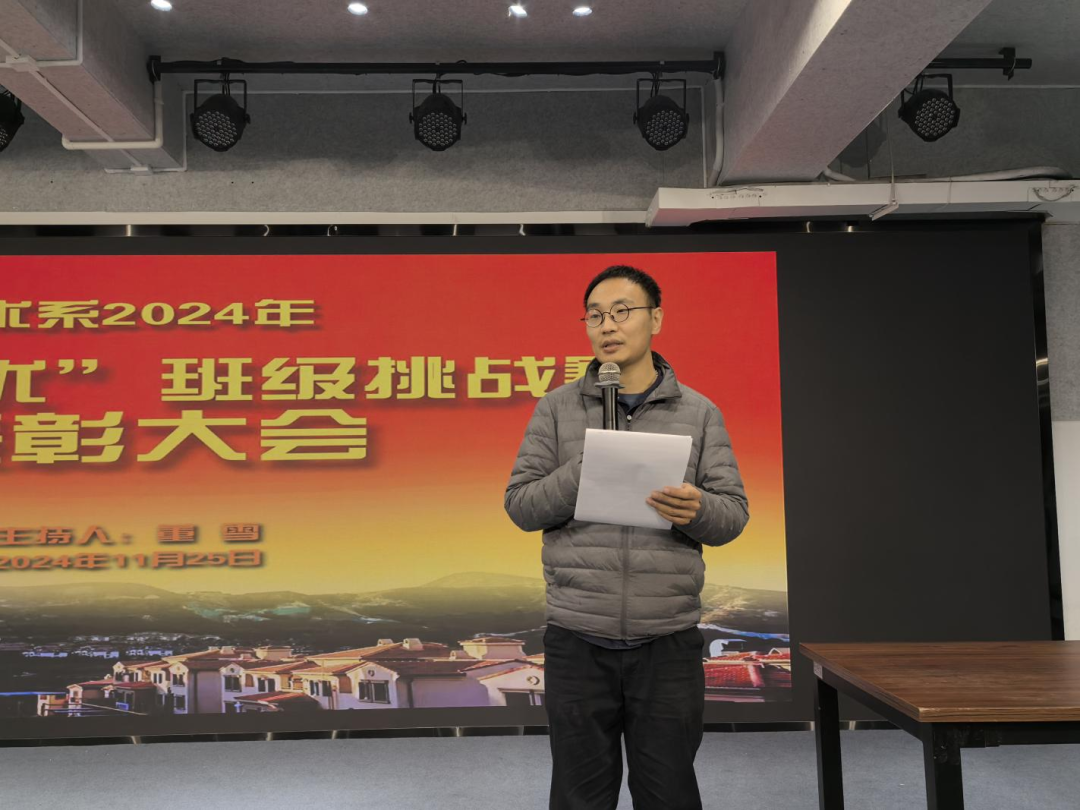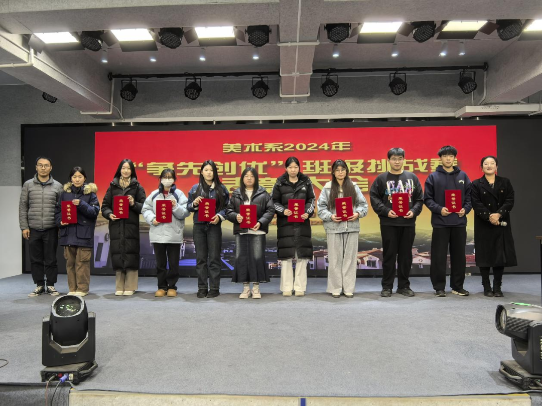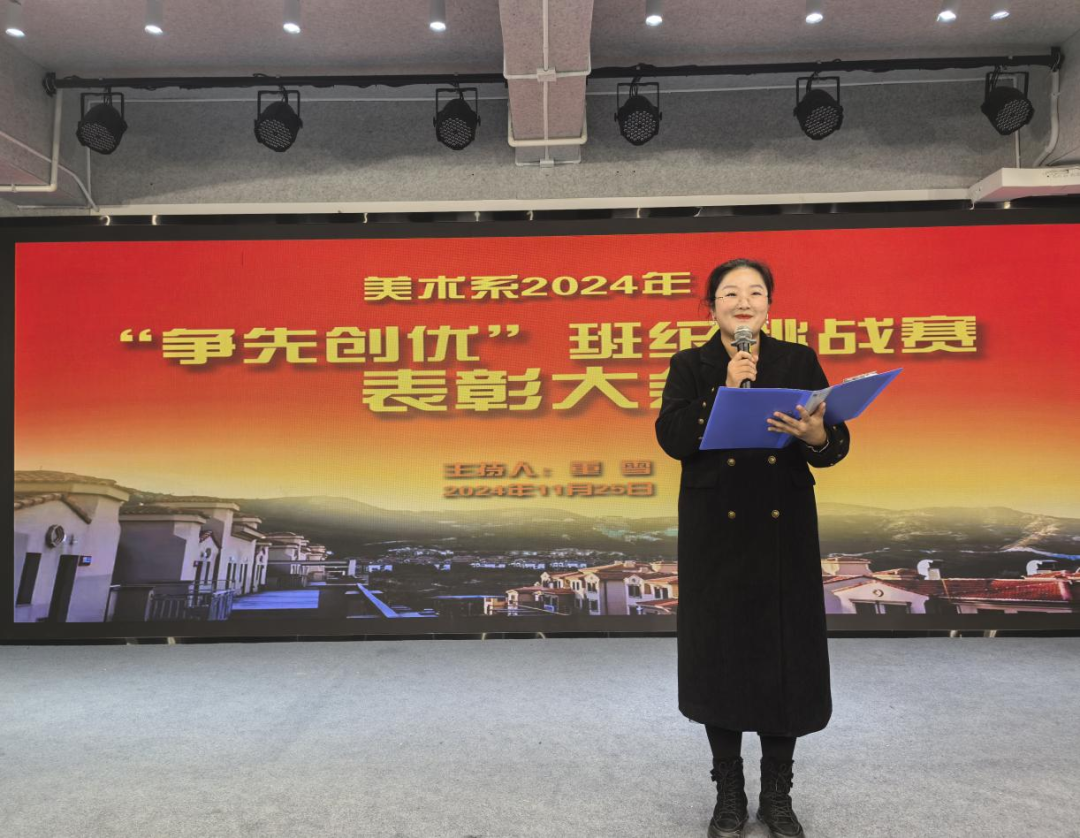 表彰大会上,美术系党总支师生二支部书记赵龙对获奖班级和个人表示祝贺,并强调了“争先创优”班级挑战赛对培养学生团队精神和竞争意识的重要性,鼓励全体学生以获奖班级和优秀个人为榜样,在未来的学习与生活中追求卓越,用实际行动共同践行“立德崇艺、唯美创新”的校训。
