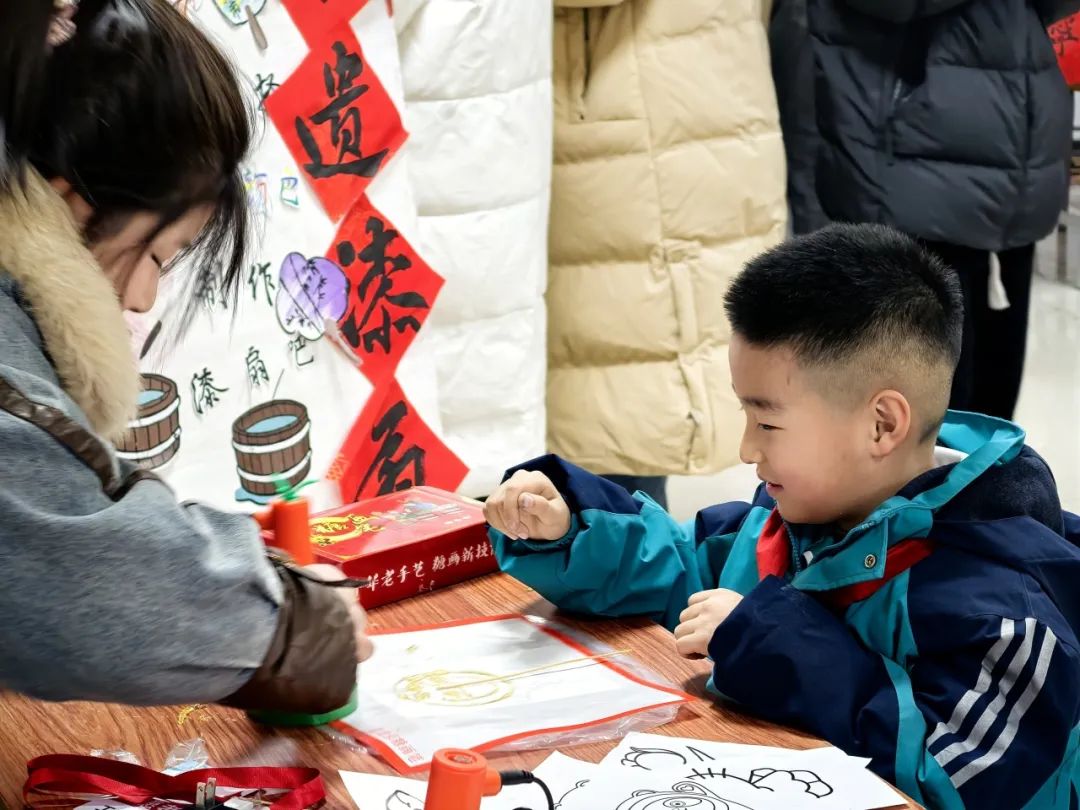 在活动现场,写春联、非遗漆扇、糖画、捏泥人、非遗脸谱、编织中国结、创意扭扭棒等一系列传统与现代相结合的活动人头攒动,热闹非凡。