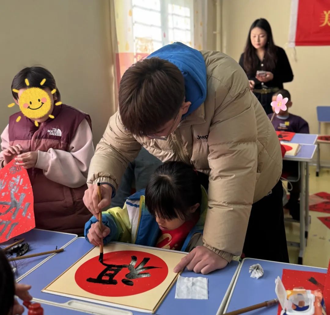志愿者们通过通俗易懂的方式,为福利院的孩子们讲解了书法的基础知识和书写技巧,从握笔姿势到结构布局,手把手进行指导。结合春节特色,孩子们学习书写“福”字,在练习中感受汉字的艺术魅力,领略中华文化的博大精深。活动现场充满了欢声笑语,传统文化与节日氛围相融,传递出浓浓的温暖与幸福。