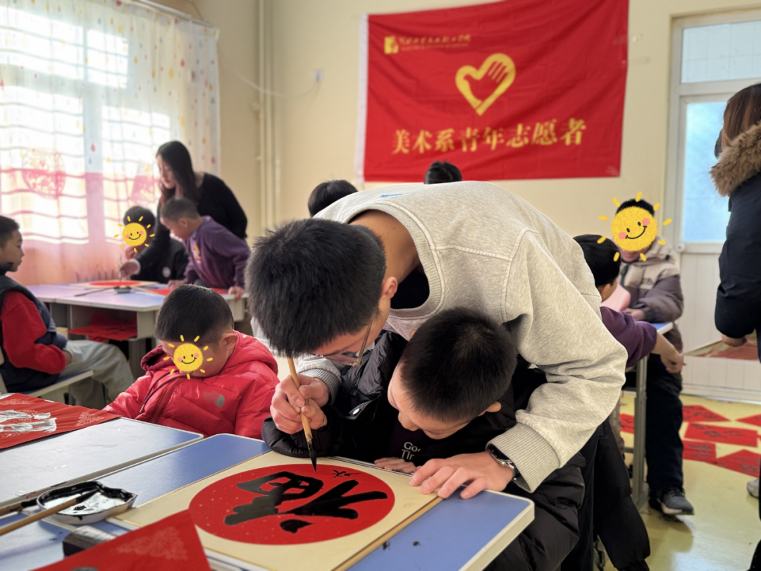 为传承好中华优秀传统文化,弘扬书法艺术,积极做好传统文化的宣传者,同时为福利院的孩子们送上新春的祝福与关爱,近日,由美术系党总支师生一支部和美术系团总支组织的志愿者团队,前往保定市儿童福利院开展了以“笔墨传情 福气满满”为主题的书法支教活动。