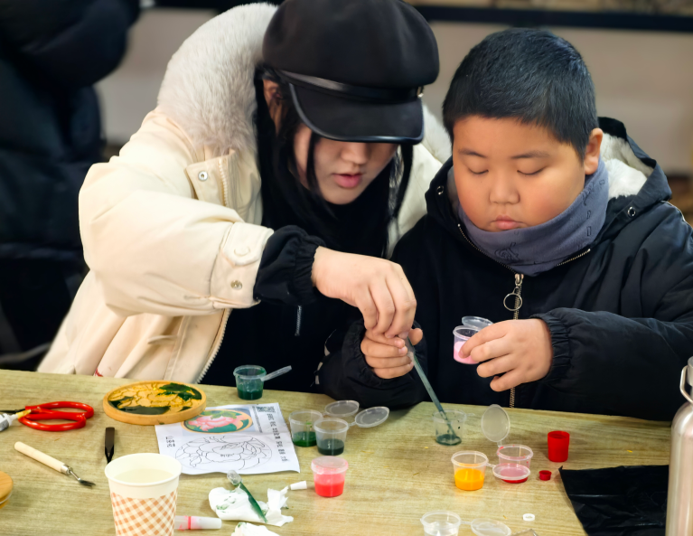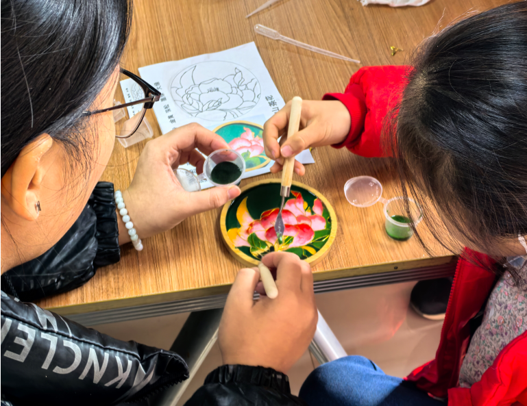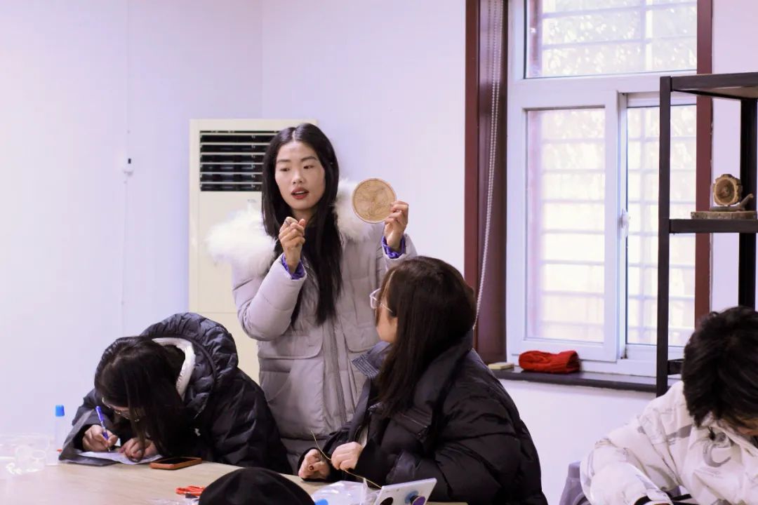 活动中,美术系专业教师王兴为参与者们详细介绍了掐丝珐琅的历史背景、工艺流程以及制作技巧。从掐丝、调沙到封层,王老师亲自示范,带领大家充分体验这一传统工艺的制作过程。志愿者们也积极协助,手把手指导参与者,确保每一位学员都能完成自己的掐丝珐琅作品。通过生动的讲解和实践演示,参与者们对这一艺术形式有了更加深入的理解,也让中华优秀传统文化更加鲜活生动地走进了大家的心中。