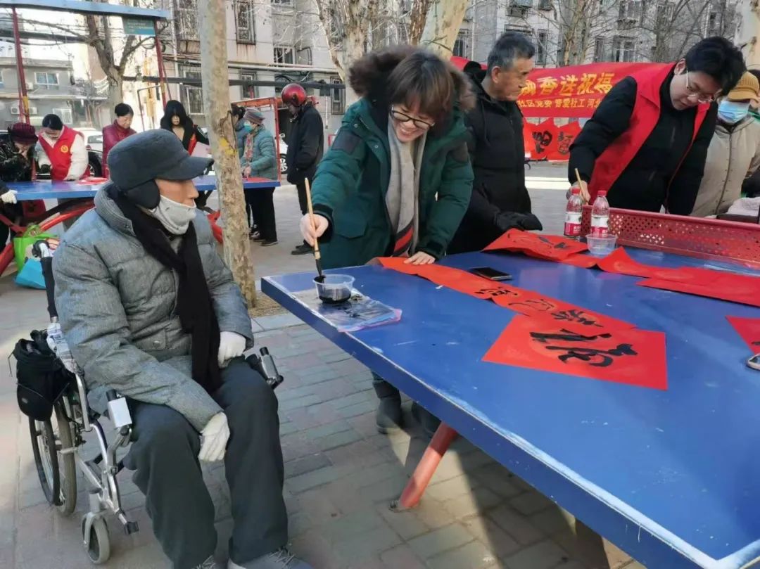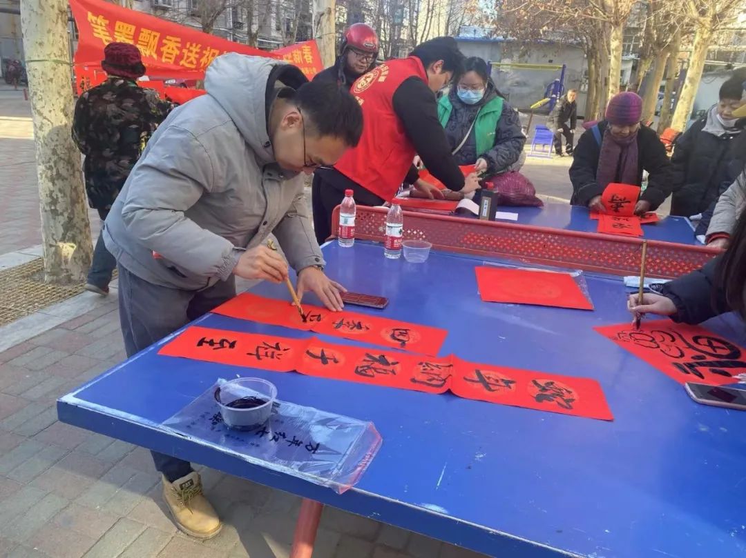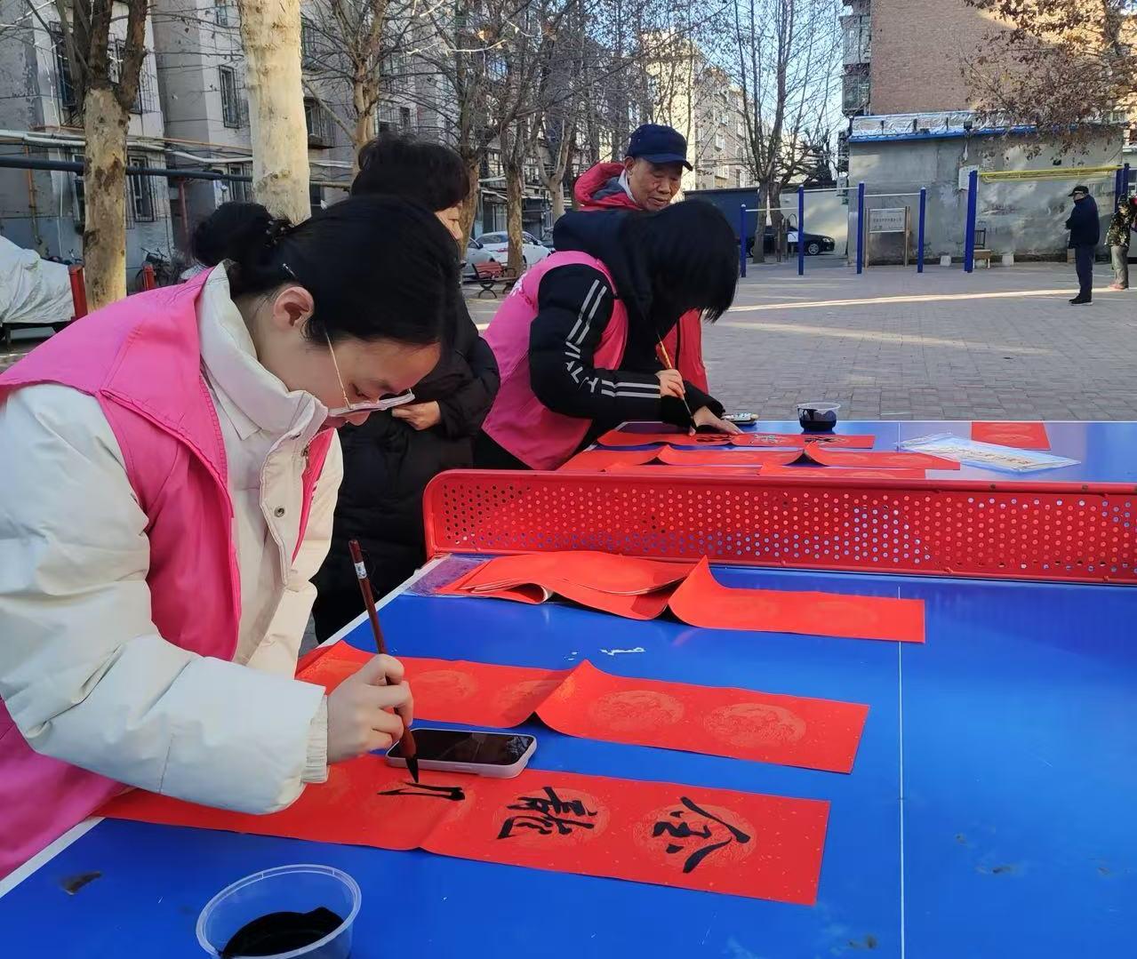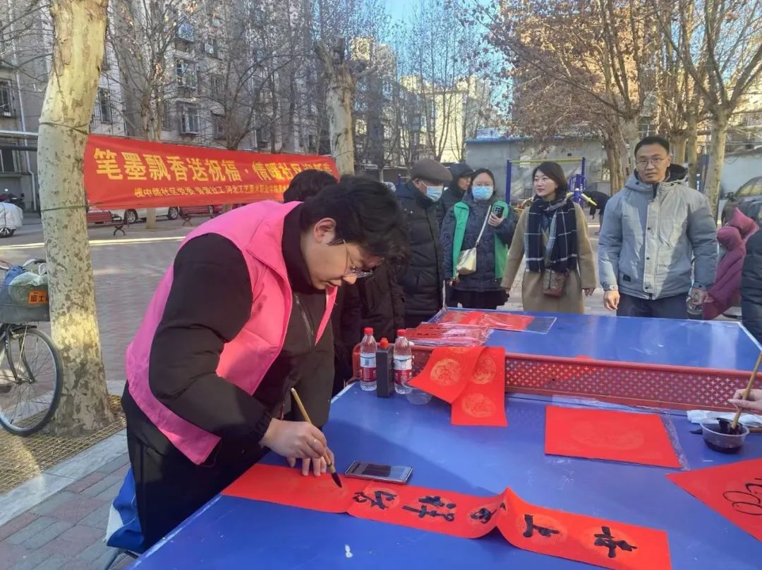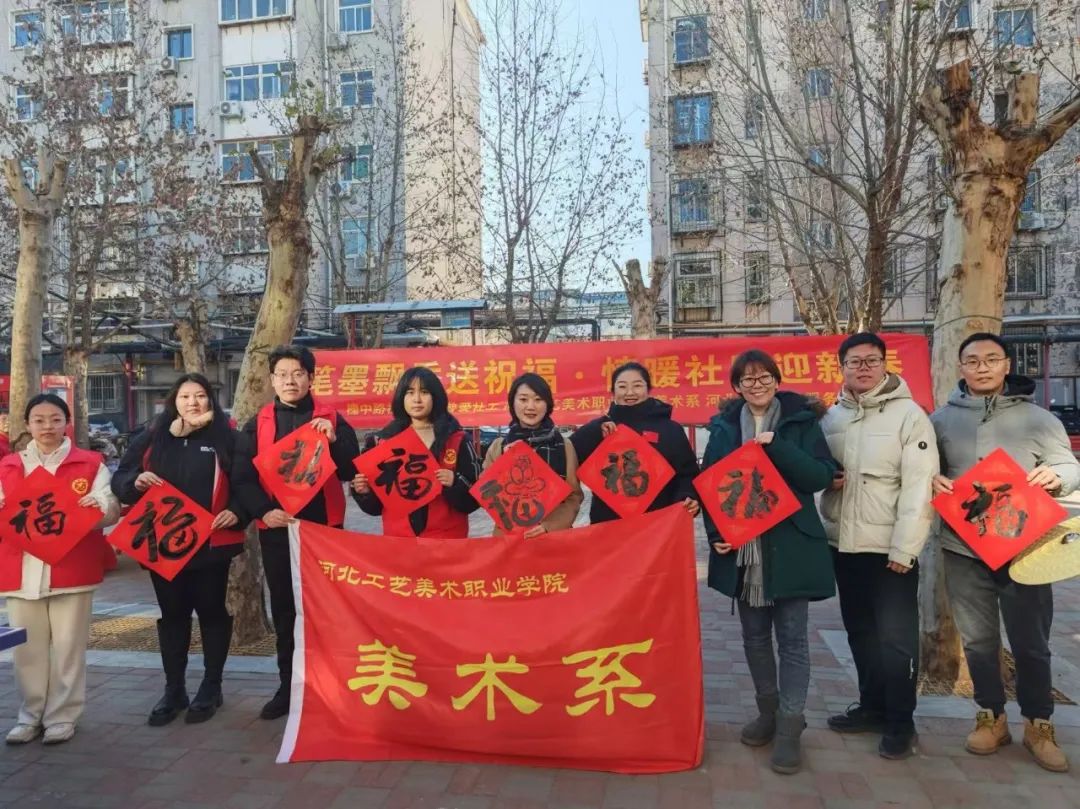 为弘扬中华优秀传统文化,充分发挥党建引领和党员先锋模范作用,2025年1月7日上午,河北工艺美术职业学院美术系艺术实践中心师生联合石家庄市桥西区东风街道槐中路社区党委,在石运小区党群活动广场开展“笔墨飘香送祝福,情暖社区迎新春”写春联、送祝福主题活动。美术系书法专业教师孙宙、美术系党总支师生二支部书记赵龙、党员常文超、董雪带领10余名学生志愿者与槐中路居委会党委书记李澄和社区志愿者共同参加了活动。