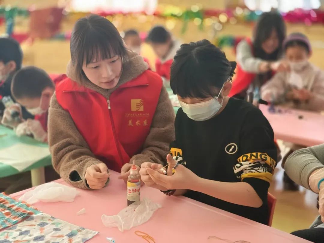 为认真贯彻落实习近平总书记关于青年工作的重要思想和关于志愿服务的重要论述,进一步弘扬雷锋精神,传播中华优秀传统文化,3月16日,美术系团总支组织青年志愿者走进保定市儿童福利院,为孩子们带来了一堂生动有趣的非遗扎染体验课程。在这场艺术与爱的交融中,志愿者们用一块块染布传递温暖,让孩子们在亲手创作中感受传统文化的独特魅力。