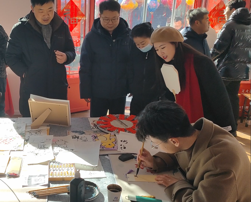 在胜芳古镇的璀璨灯会上,我系王康、刘致远两位同学凭借扎实、精湛的绘画功底,为往来游客精心绘制精美的灯会纪念画作。这些作品笔触细腻、栩栩如生,将传统文化的独特魅力展现得淋漓尽致,为灯会现场增添了浓郁醇厚的文化氛围,成为灯会上一道别样的人文风景。此外,在霸州非遗小院里,他们又化身为非遗文化的传播使者,耐心细致地为游客讲解非遗文化的深厚历史渊源与精妙制作工艺,众多游客被非遗文化深深吸引,驻足聆听、参与体验,成功点燃了大众对非遗文化的热爱之火。