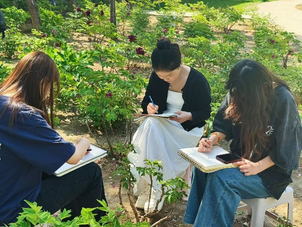 为深化美育实践教学,推动艺术与自然的深度交融,引导学生在大自然的课堂中感悟艺术真谛、提升专业素养,4月底,美术系志愿者走进保定市植物园,用画笔与自然进行了一场浪漫的“对话”。