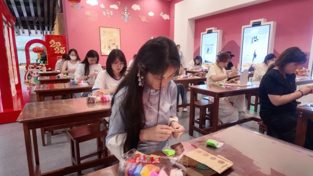 随后,在“镜中千年”彩泥文物装点课堂中,同学们以博物馆馆藏文物中的吉祥纹样为创作灵感,利用彩泥材料重塑祥花瑞草,亲手装点镜面。每一片花叶的塑造、每一笔纹样的描摹,都是对中华传统图案美学的当代表达。