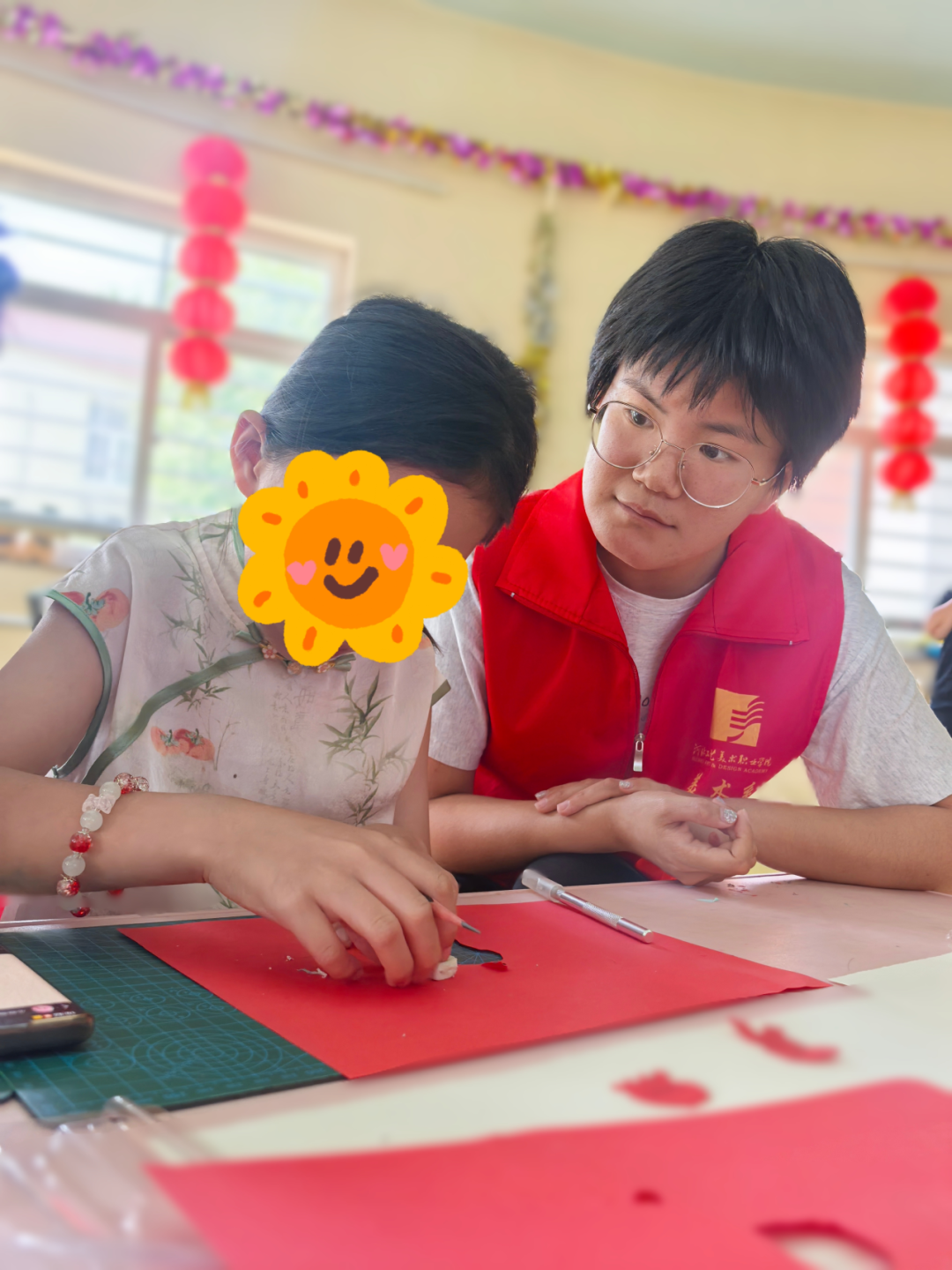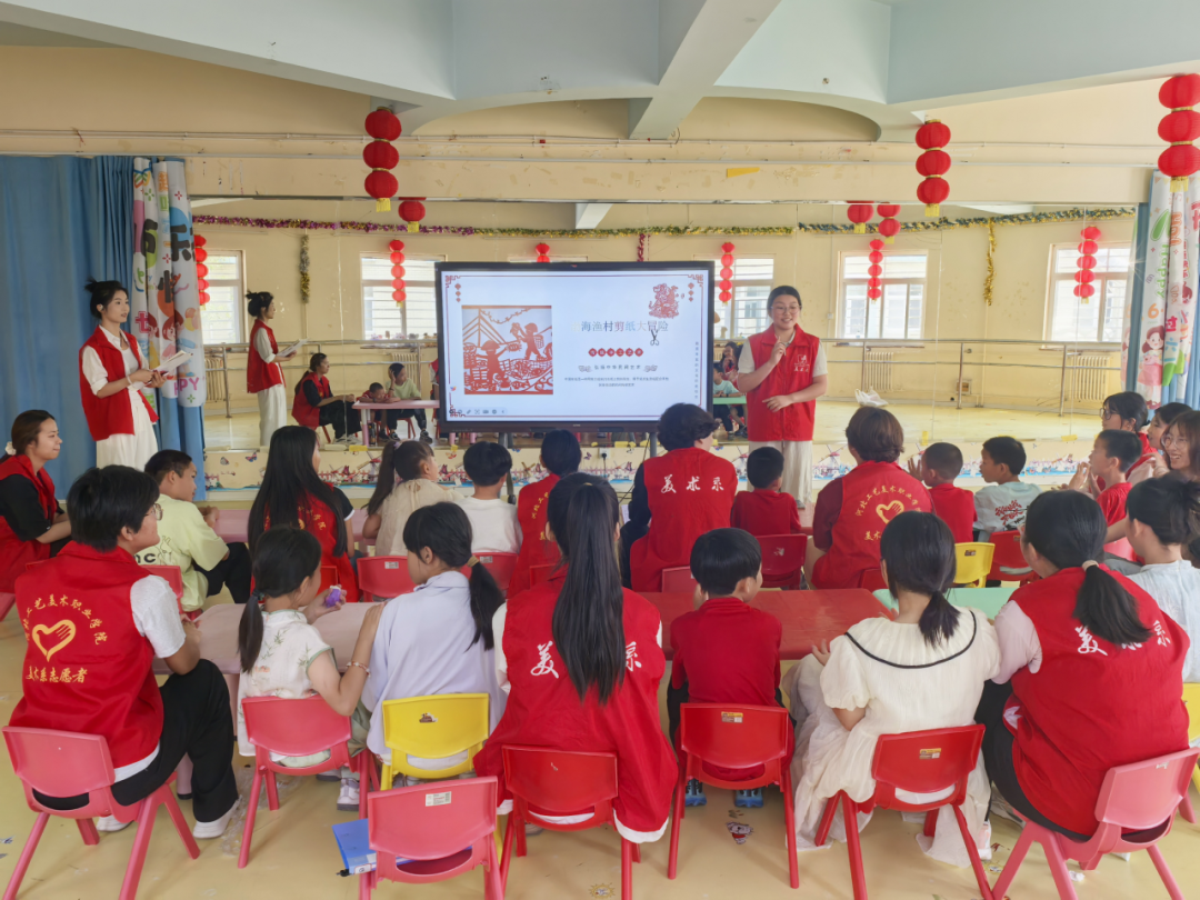 为深入贯彻落实习近平总书记关于传承和弘扬中华传统文化的重要指示精神,不断增强青年学生民族自豪感,自觉成为中华优秀传统文化的传承者与弘扬者。6月8日,美术系志愿服务队走进保定市儿童福利院,开展以“剪纸绘童心 非遗润童梦”为主题的非遗剪纸教学活动。此次活动依托渤海渔村剪纸非遗文化,将传统技艺与儿童美育相融合,在剪纸艺术中播撒文化的种子,在温暖陪伴中点亮童真的世界。